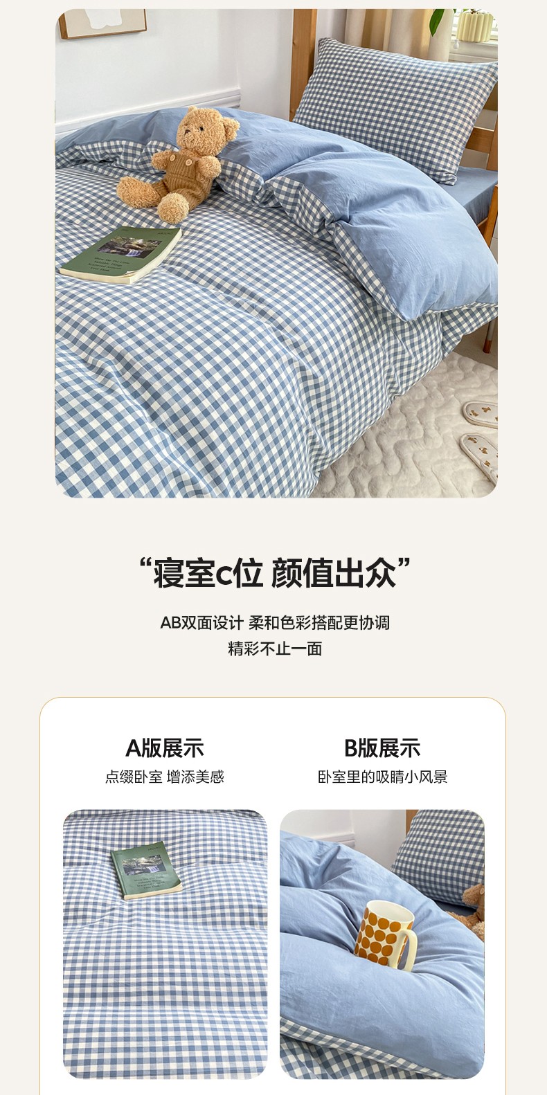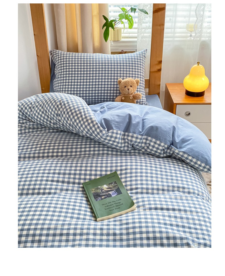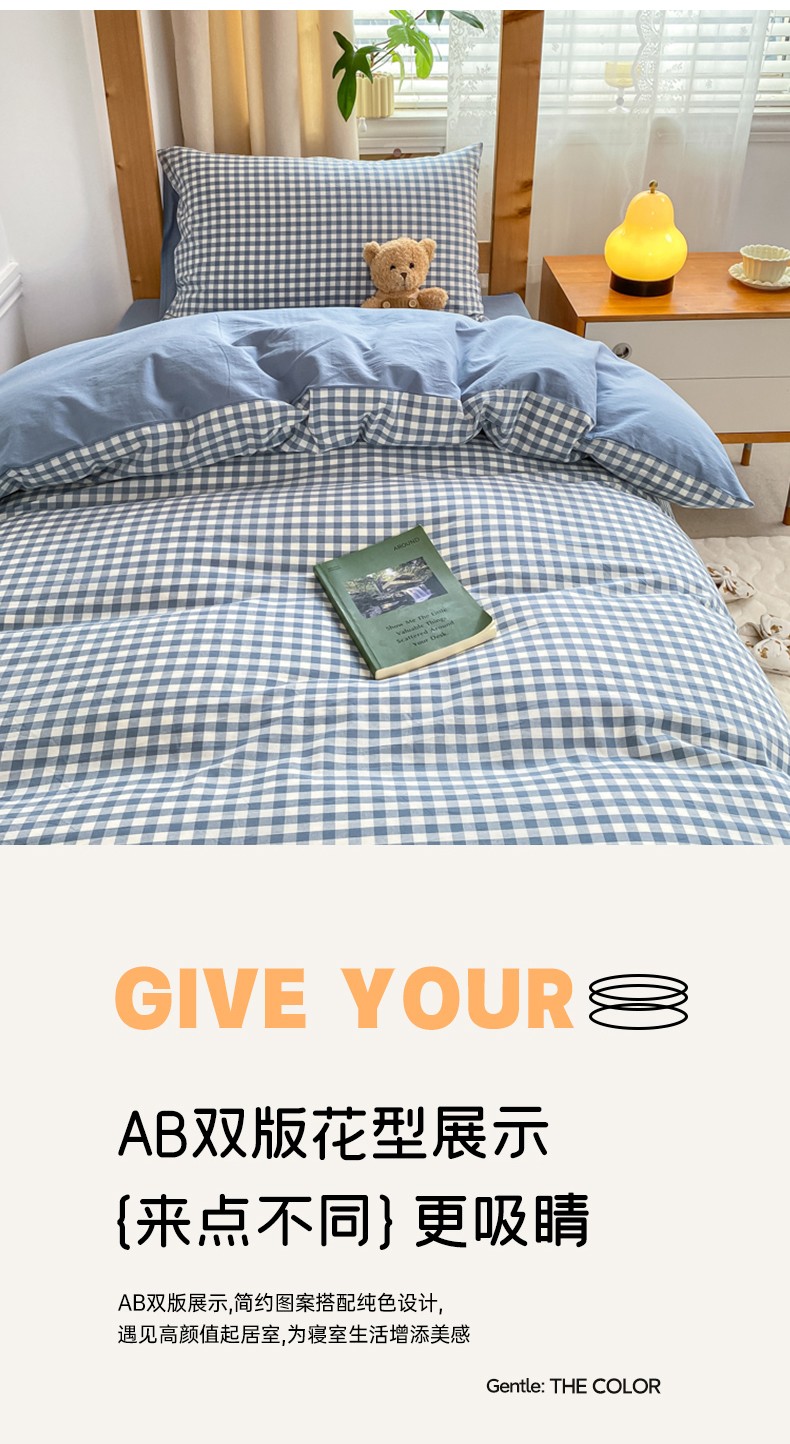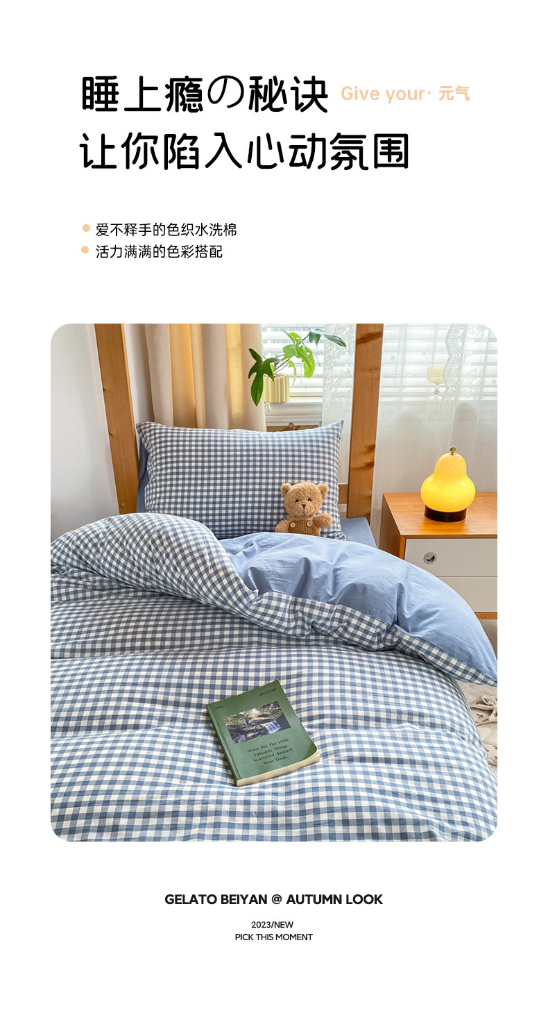 商品名称:吉象 2025新款色织学生水洗棉上下铺三件套 蓝小格