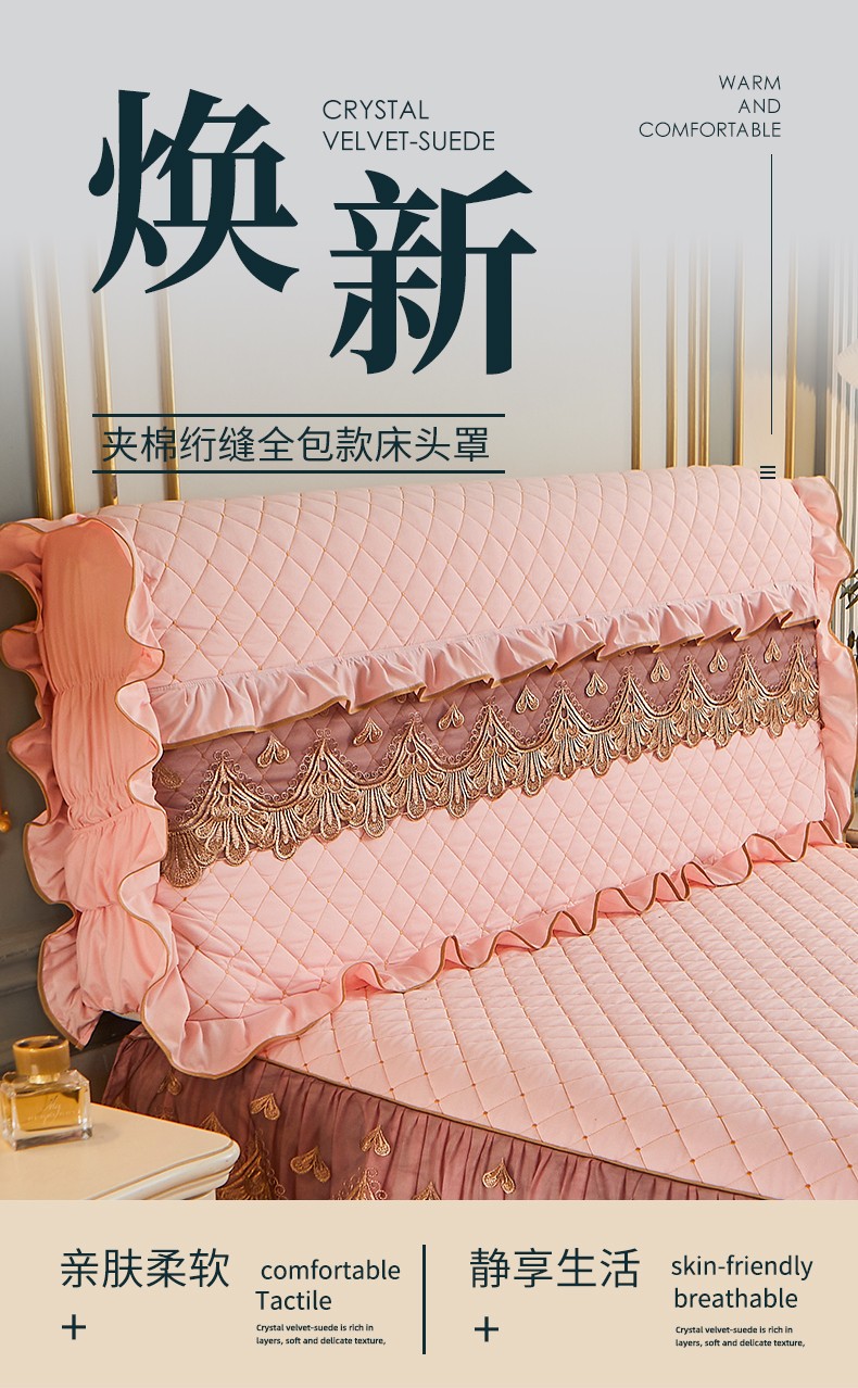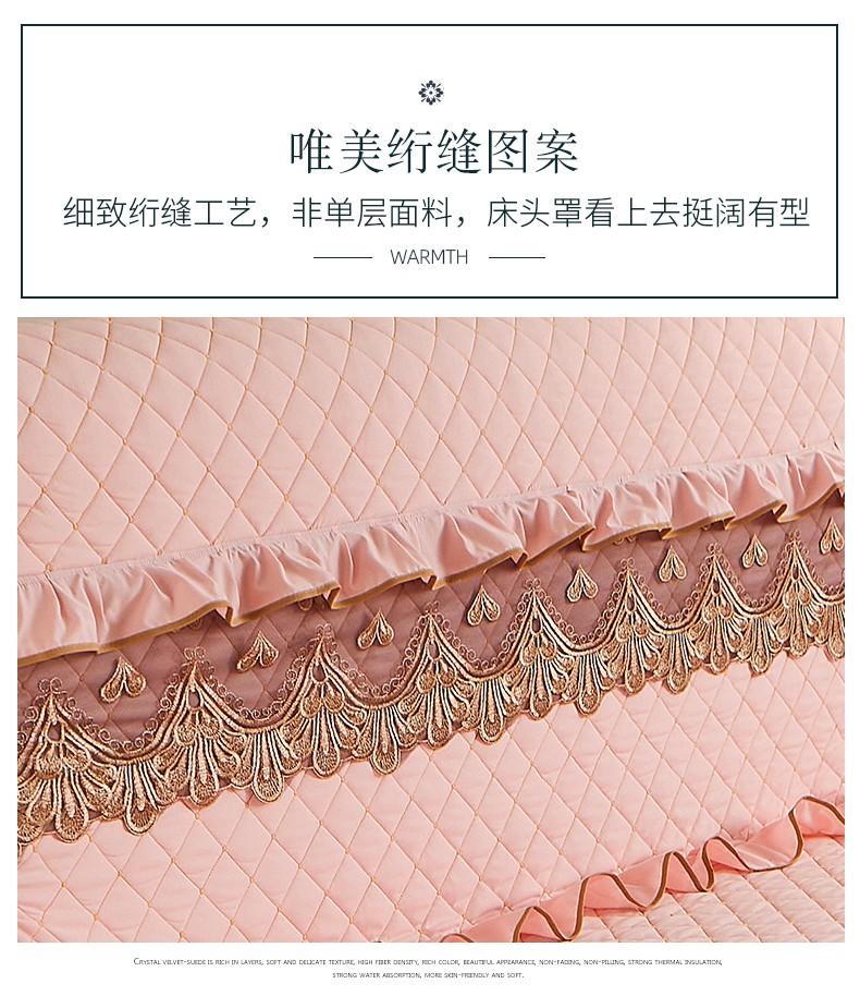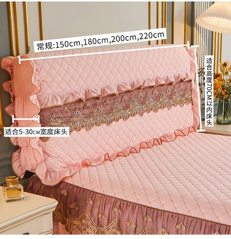 屹成 2024新款水洗棉蕾丝四季款床笠床裙单品套件-床头罩 粉玉