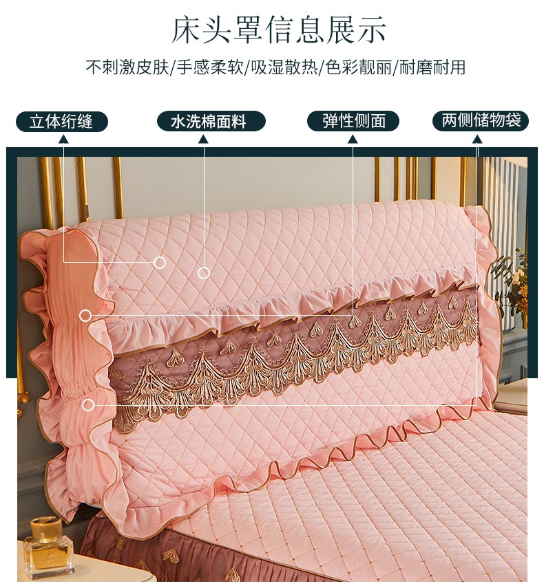 商品名称:屹成 2024新款水洗棉蕾丝四季款床笠床裙单品套件-床头罩 粉玉