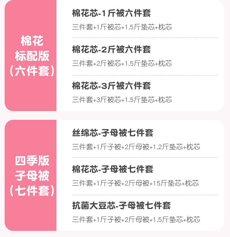 子母(2+1)大豆纤维七件套 | ¥152.00 |