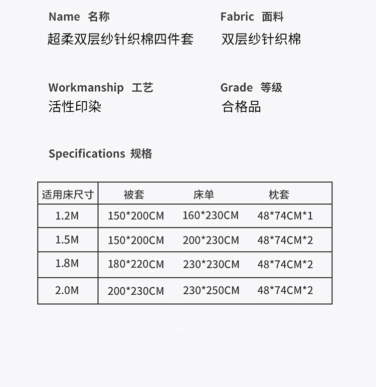 1.5m床笠款四件套(被套200*230cm) | ¥48.00 |