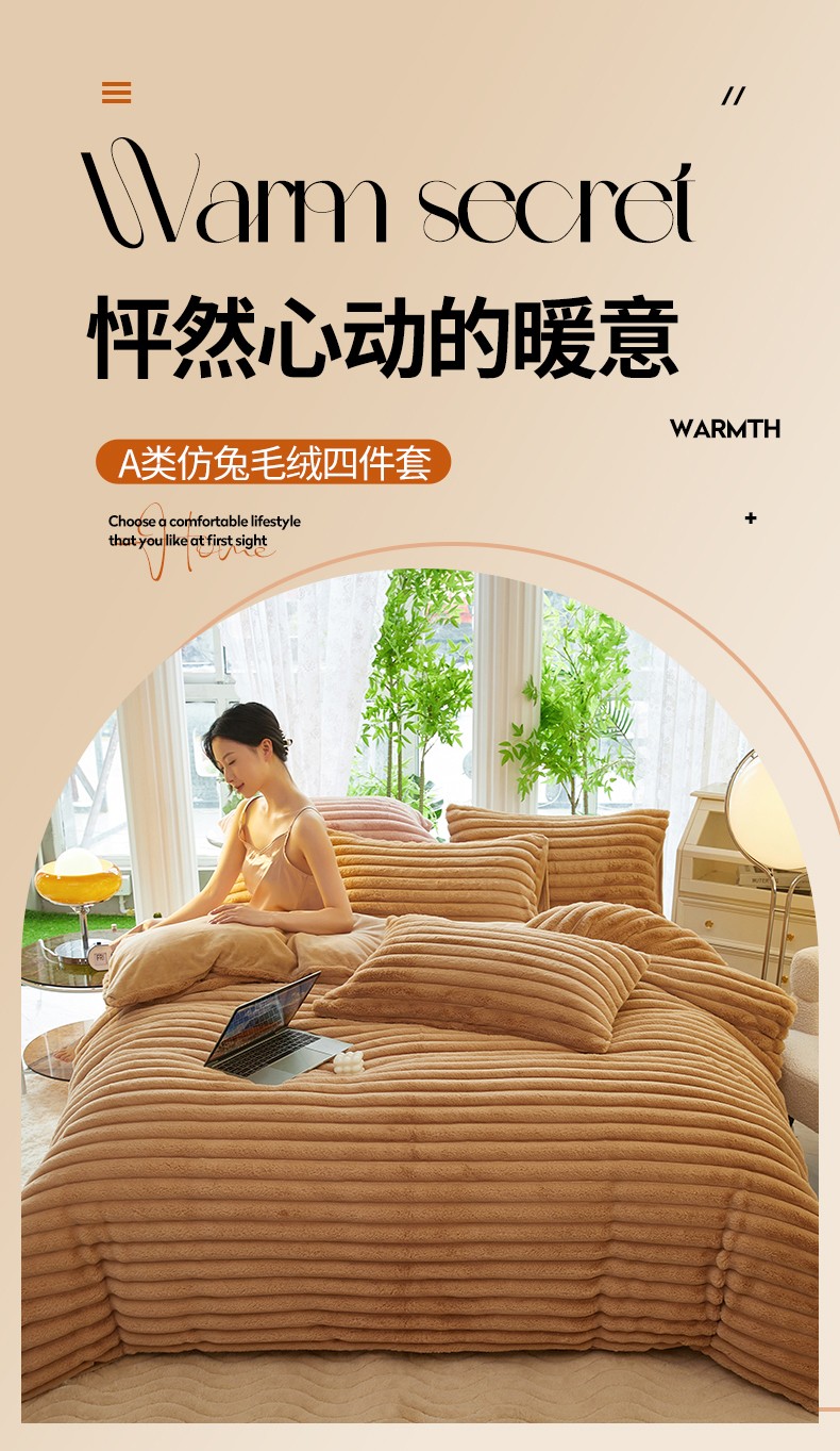 商品名称:澳洲羽 2024新款高克重牛奶绒兔兔绒四件套 奶咖