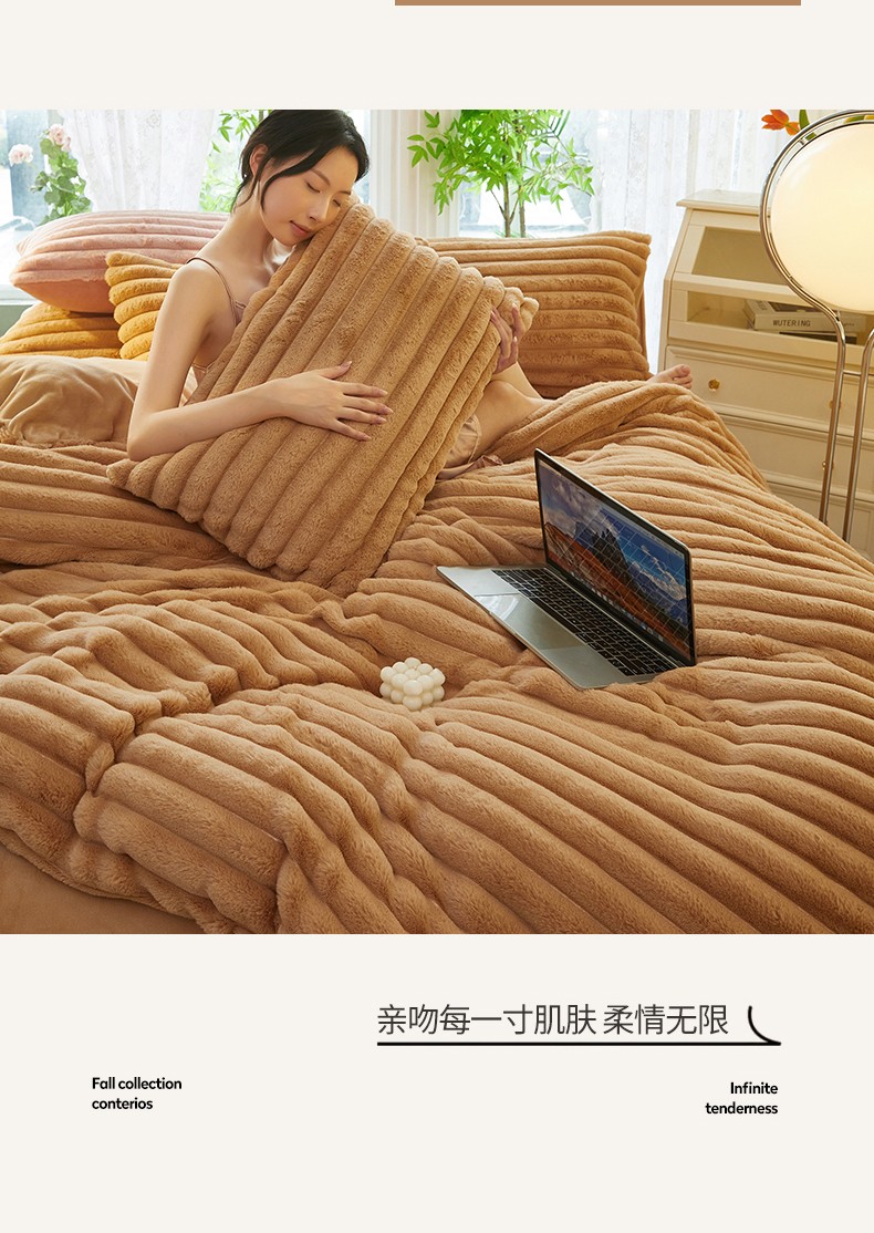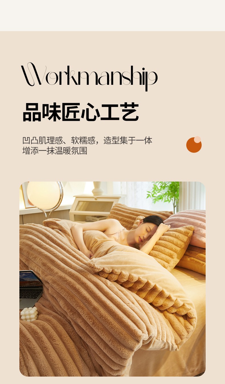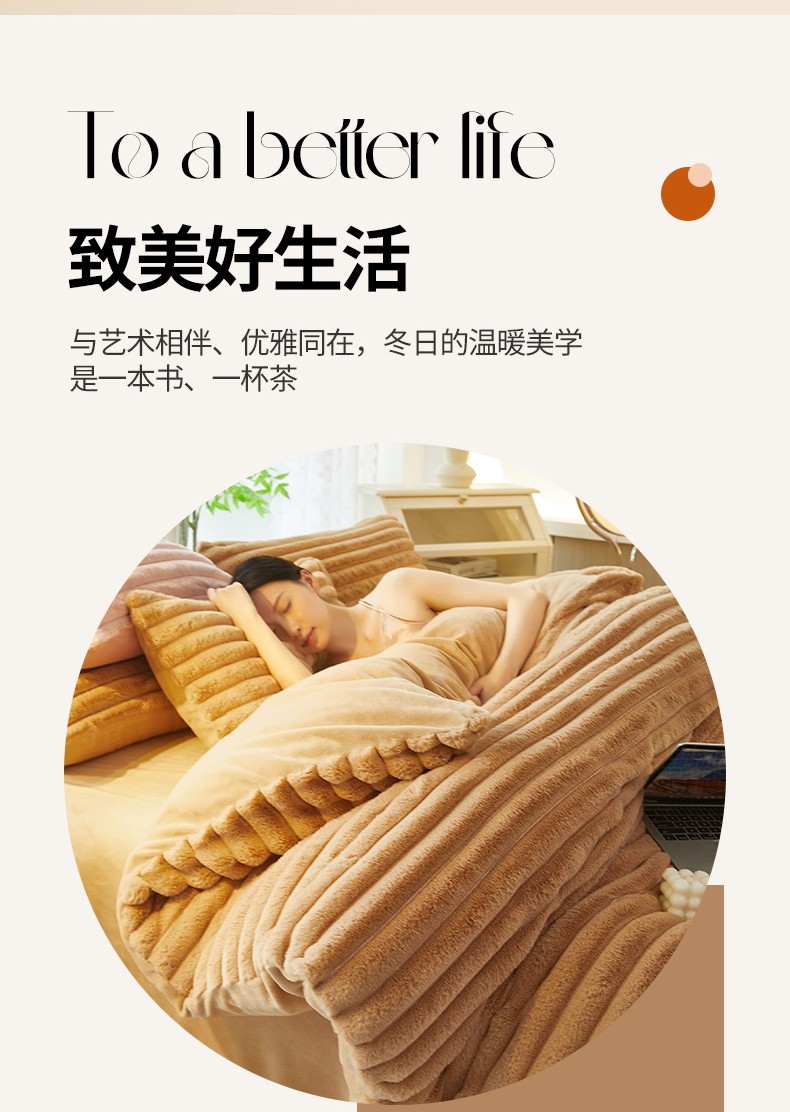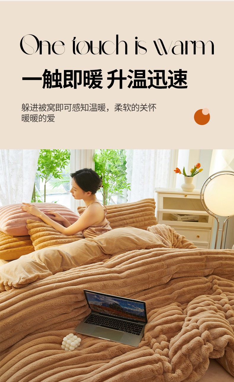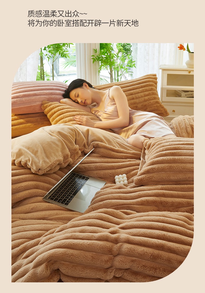 澳洲羽 2024新款高克重牛奶绒兔兔绒四件套 奶咖