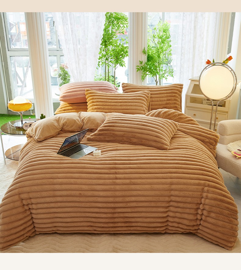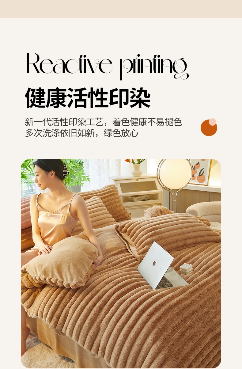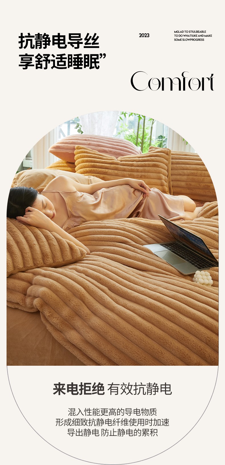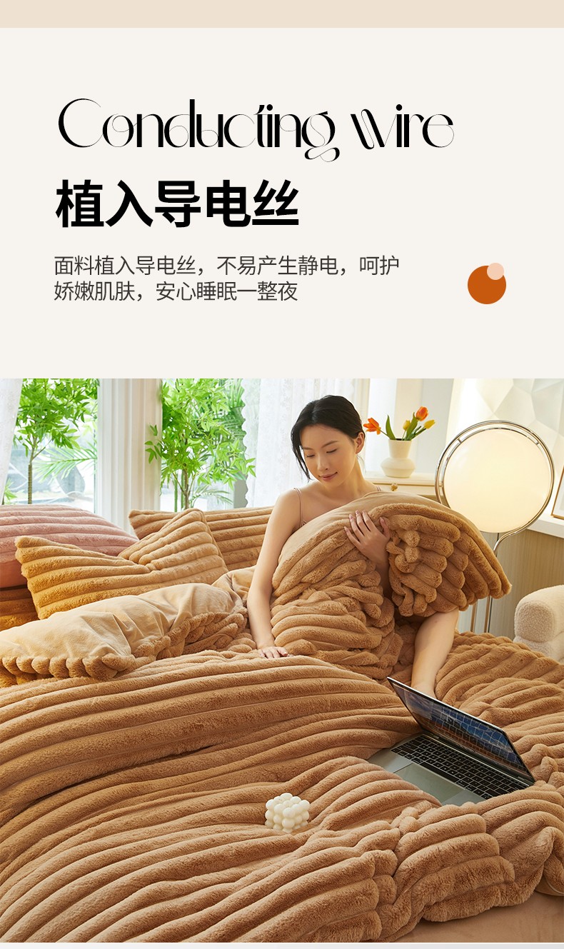 澳洲羽 2024新款高克重牛奶绒兔兔绒四件套 奶咖