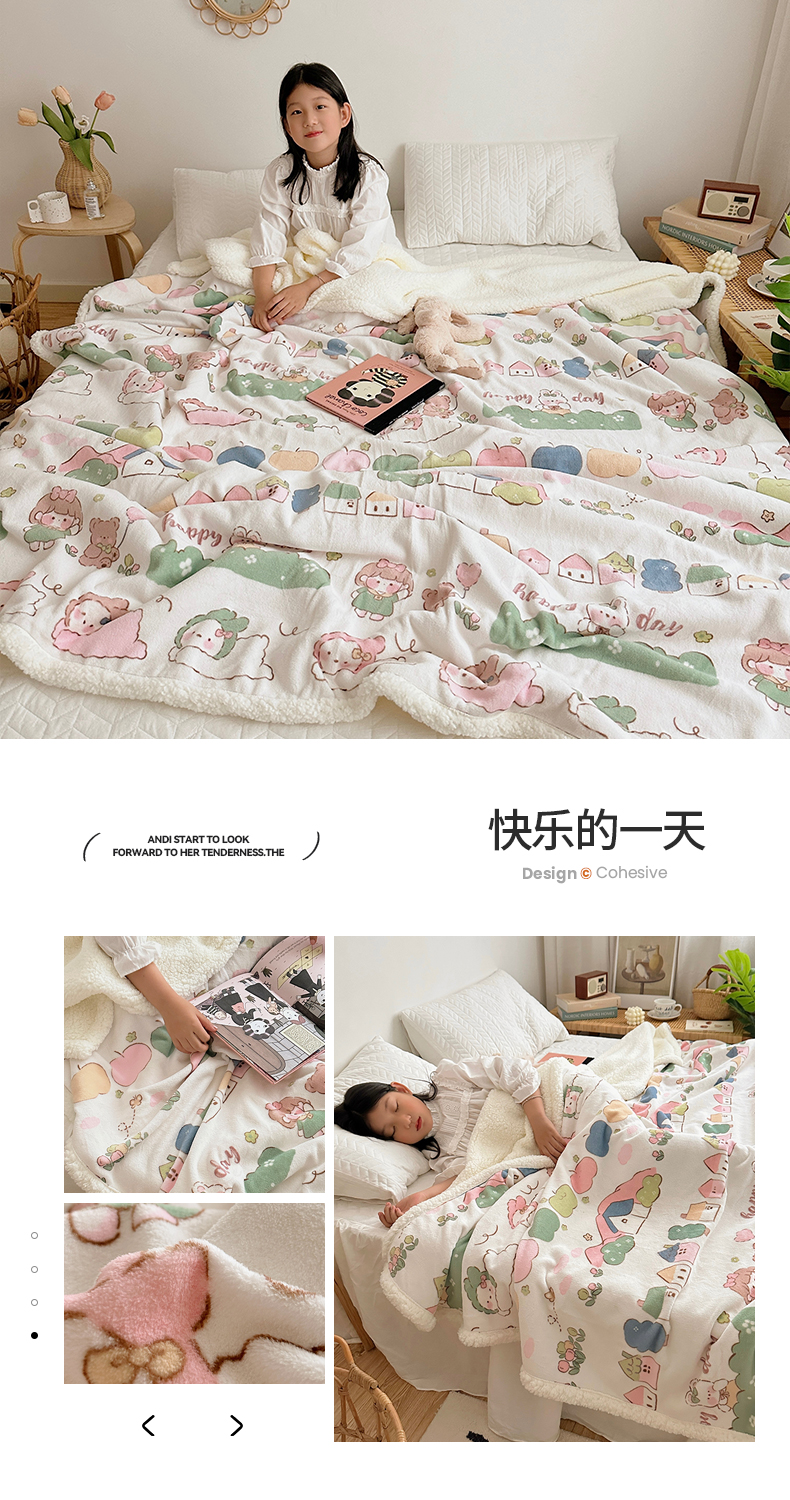 萝莉家纺 2023新款ins加厚牛奶绒羊羔绒毯午睡毯沙发盖毯 快乐的一天