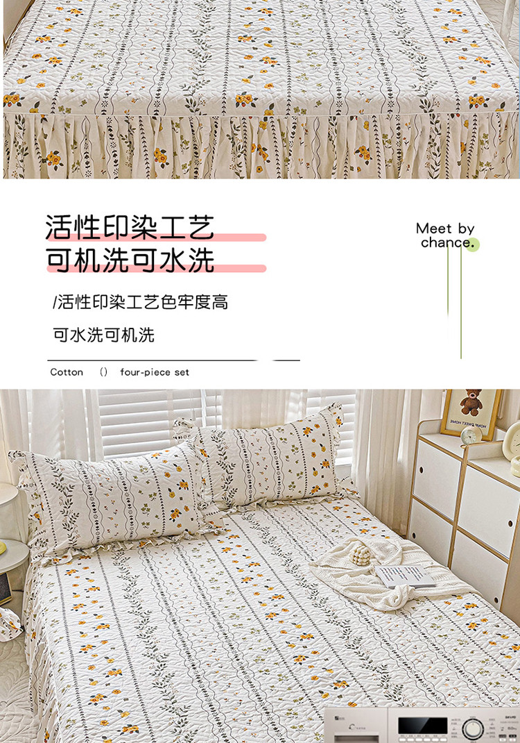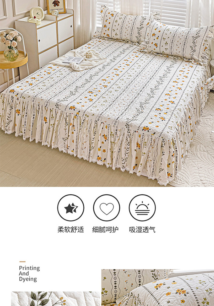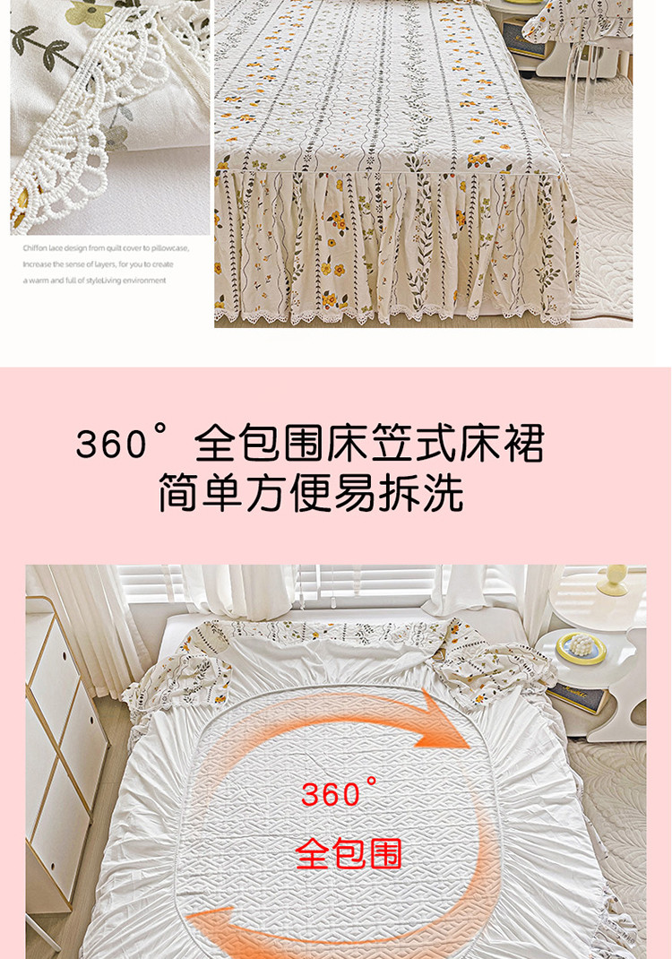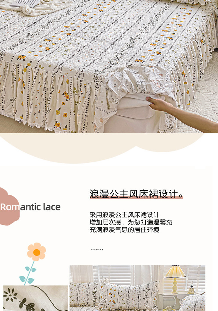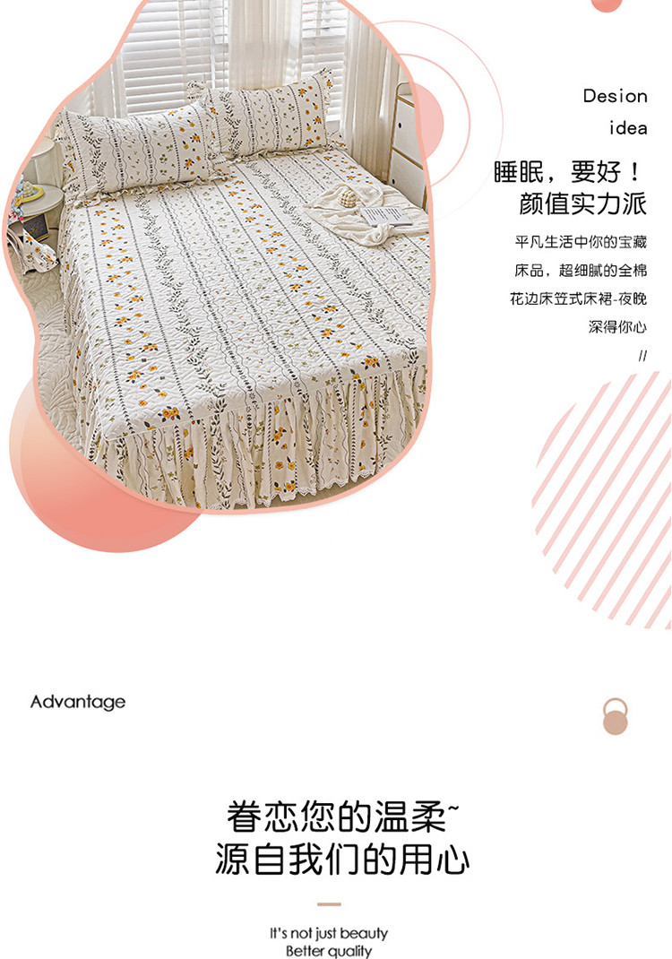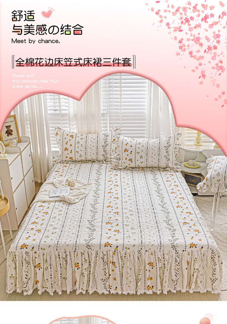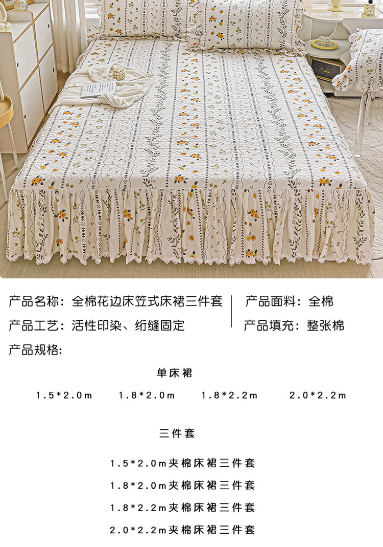 • 91家纺网 家纺一手货源 找家纺 罗艺轩 2024新款全棉花边床笠式夹棉床裙三件套波塞尔庄园芙拉花园