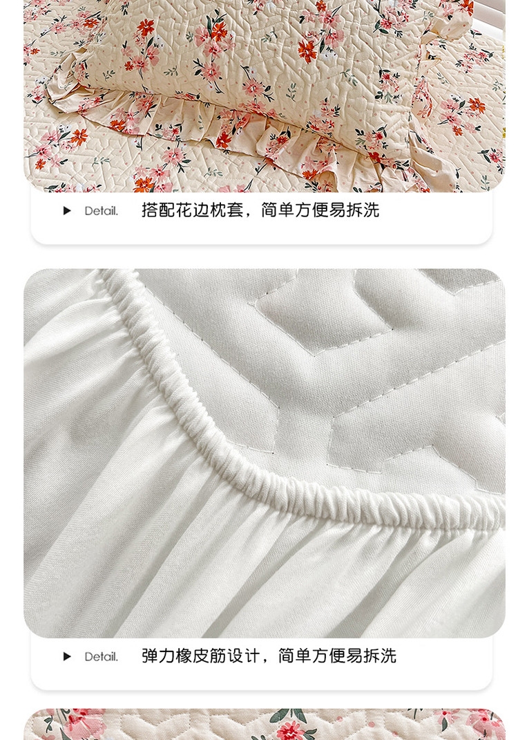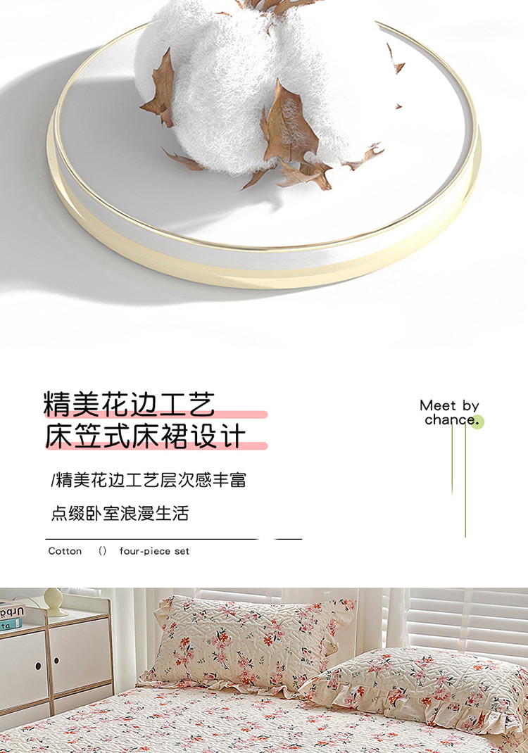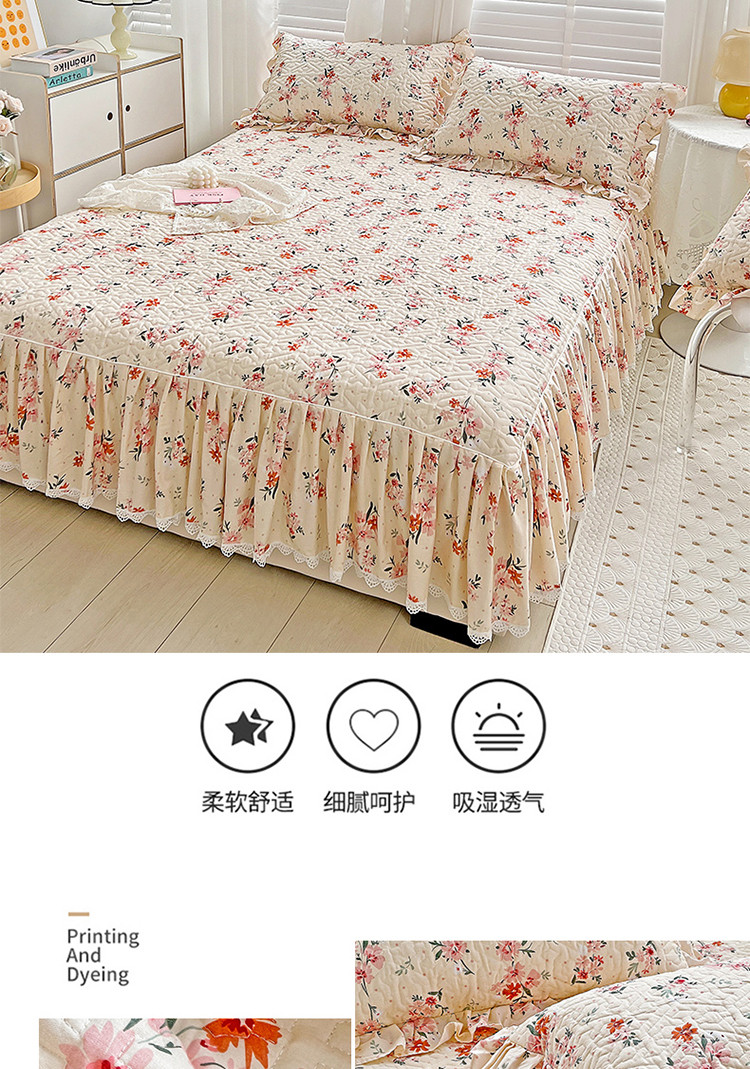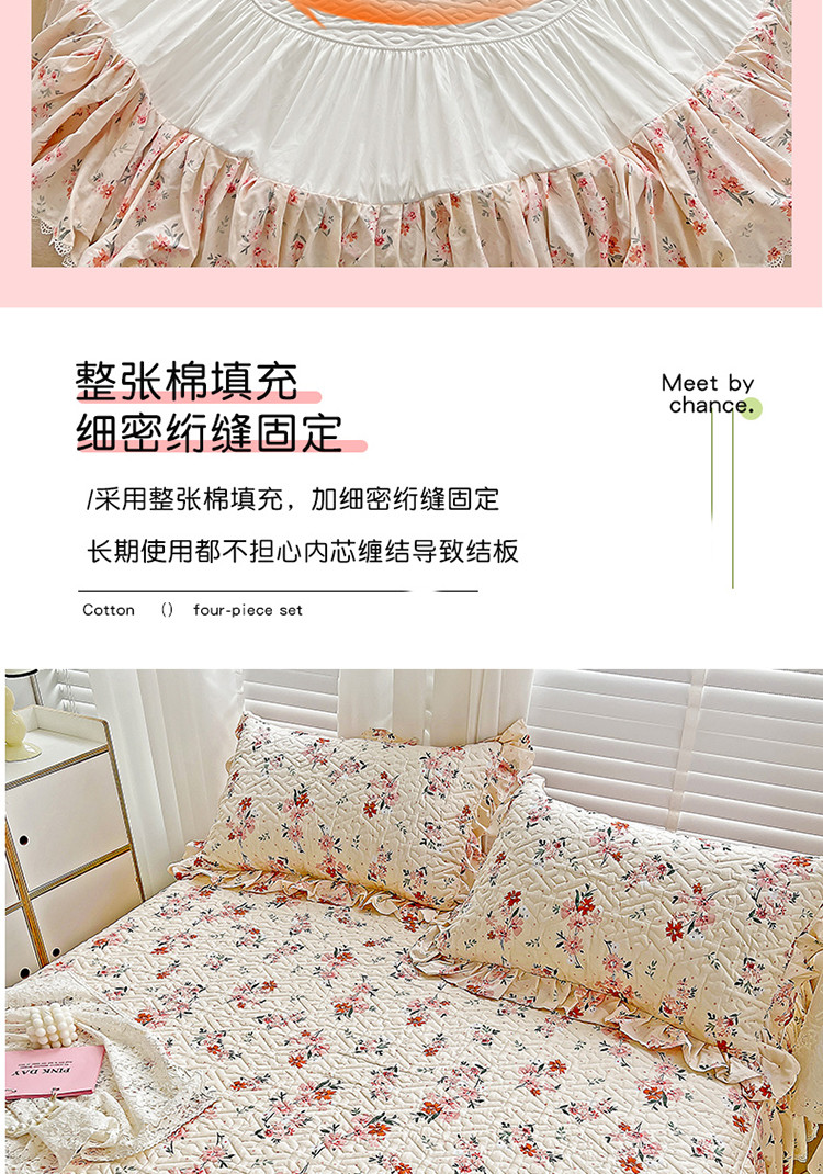 • 91家纺网 家纺一手货源 找家纺 罗艺轩 2024新款全棉花边床笠式夹棉床裙三件套波赛尔庄园-小时光