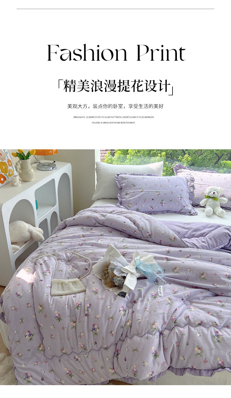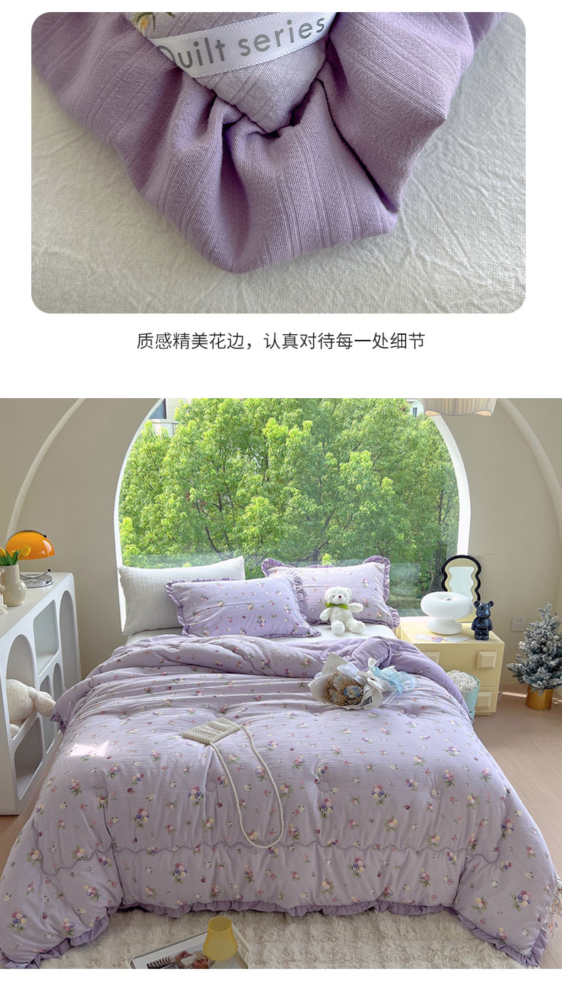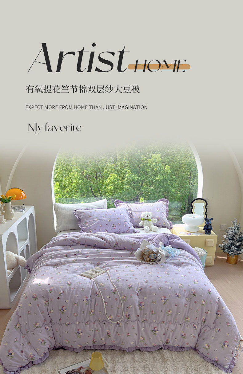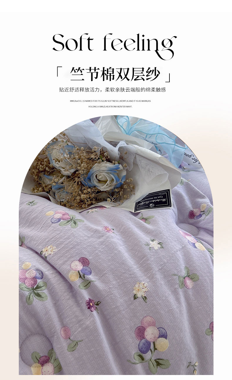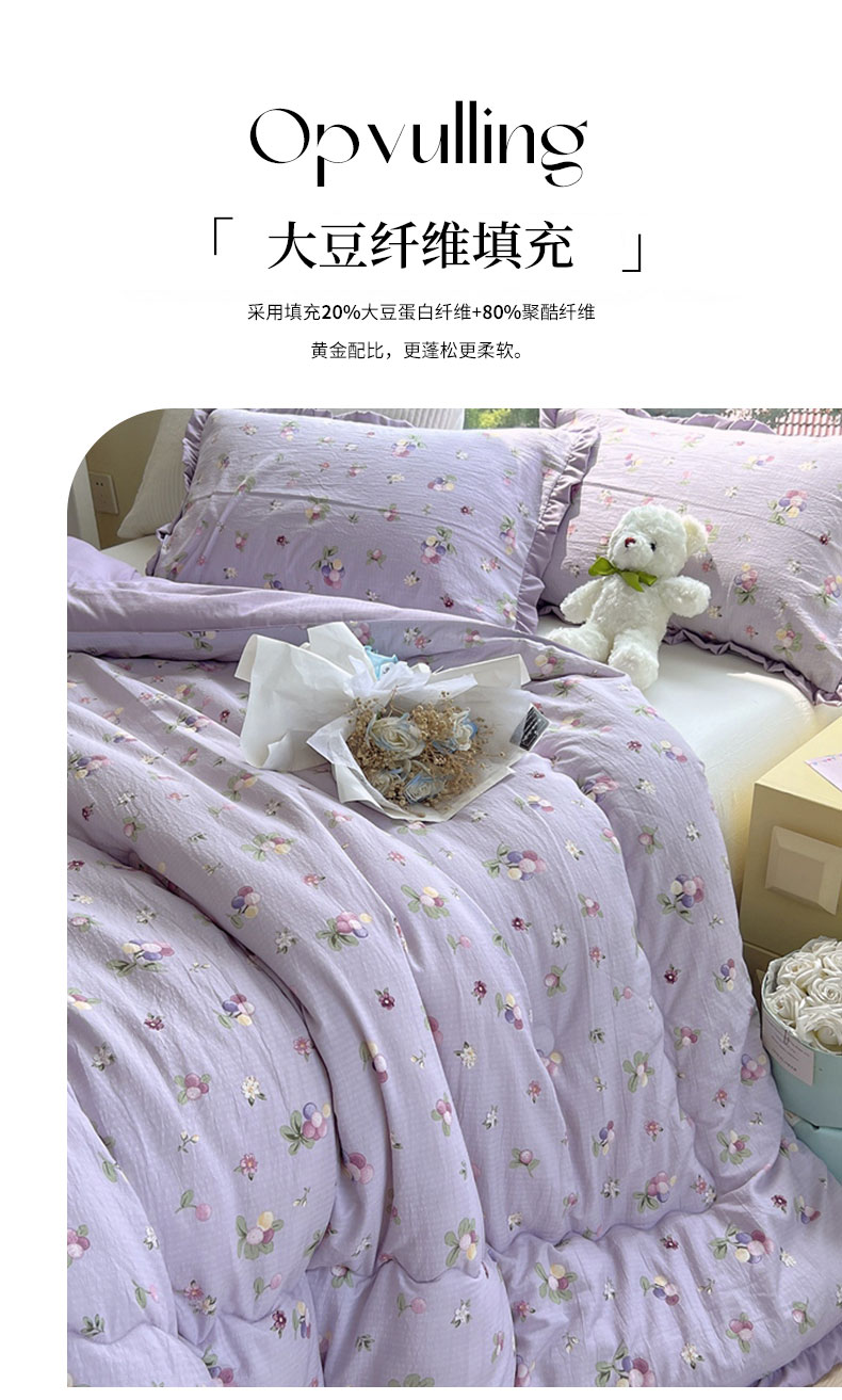 商品名称:典冠 2024新款有氧提花竺节棉双层纱大豆被春秋被冬被 紫葡萄