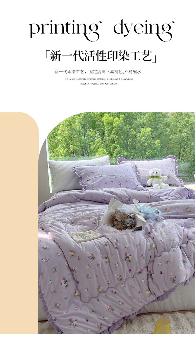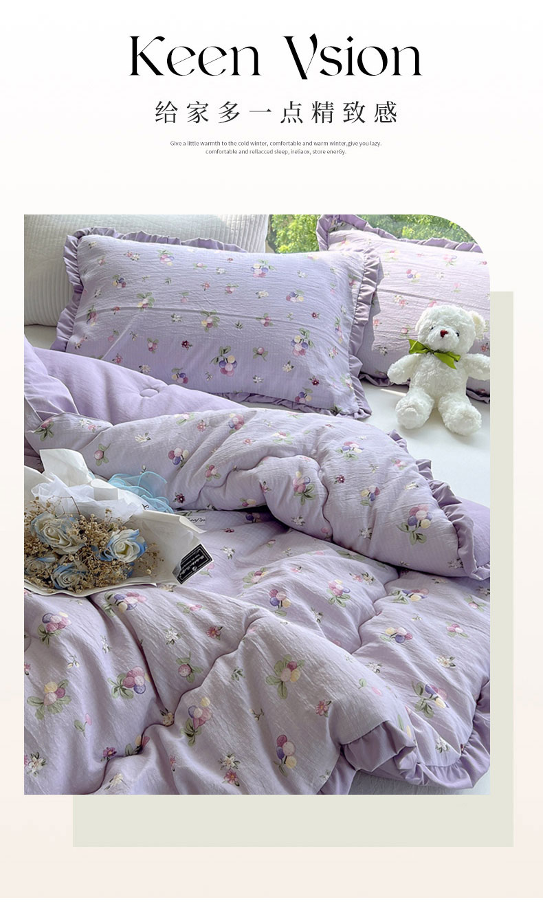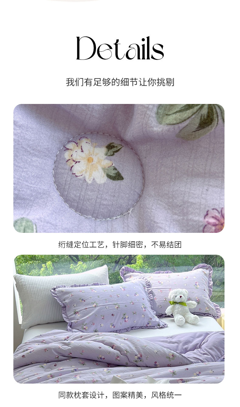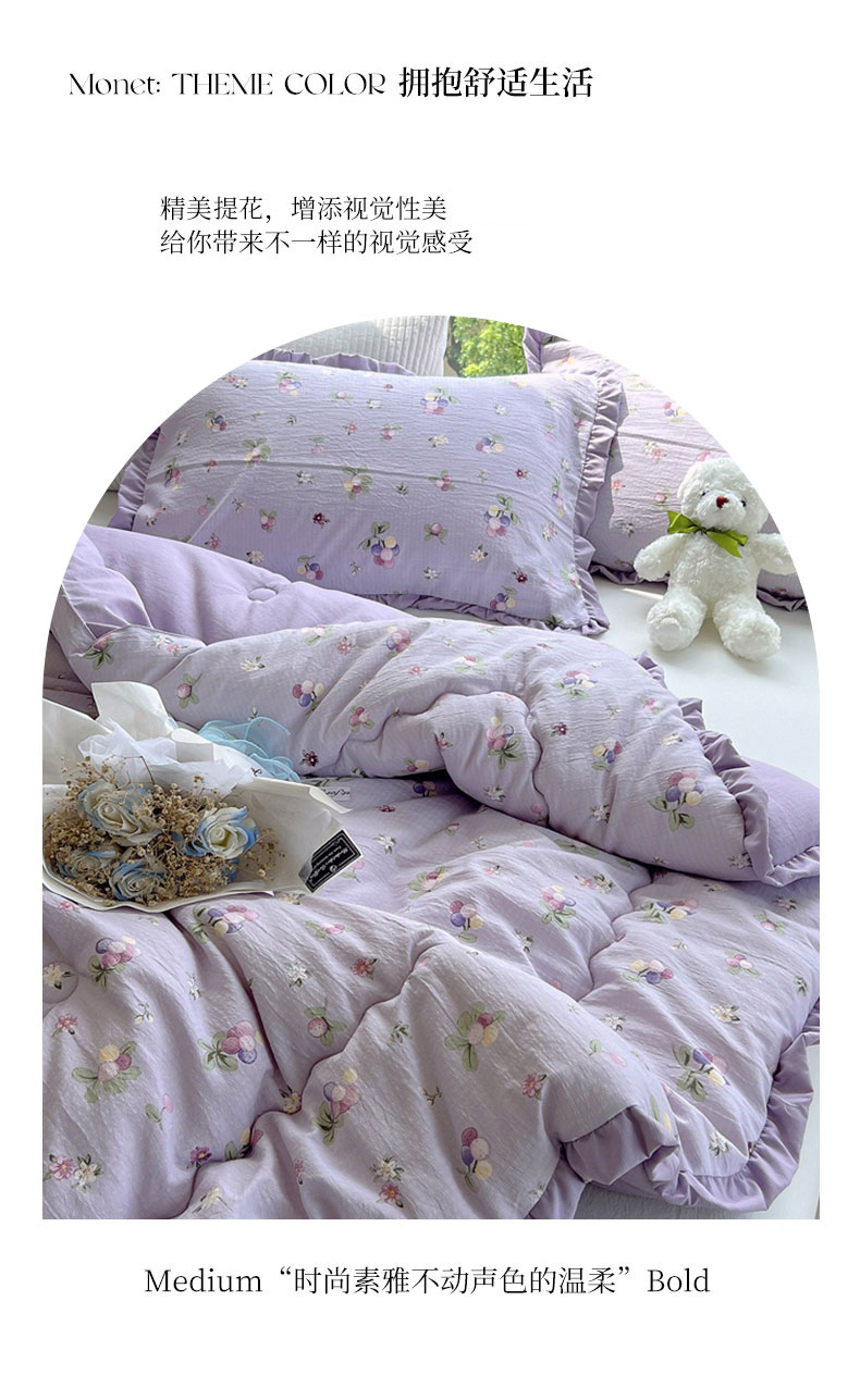 商品名称:典冠 2024新款有氧提花竺节棉双层纱大豆被春秋被冬被 紫葡萄