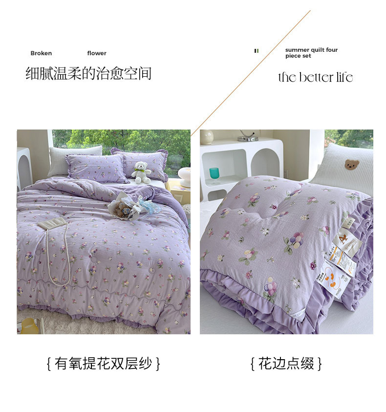 (总)典冠 2025新款全棉印花夏凉被夏被四件套,爱心木马,极简主义,洛琳粉,美好时光,甜美蝴蝶结,兔子乐园,叶曲,醉花语,组合