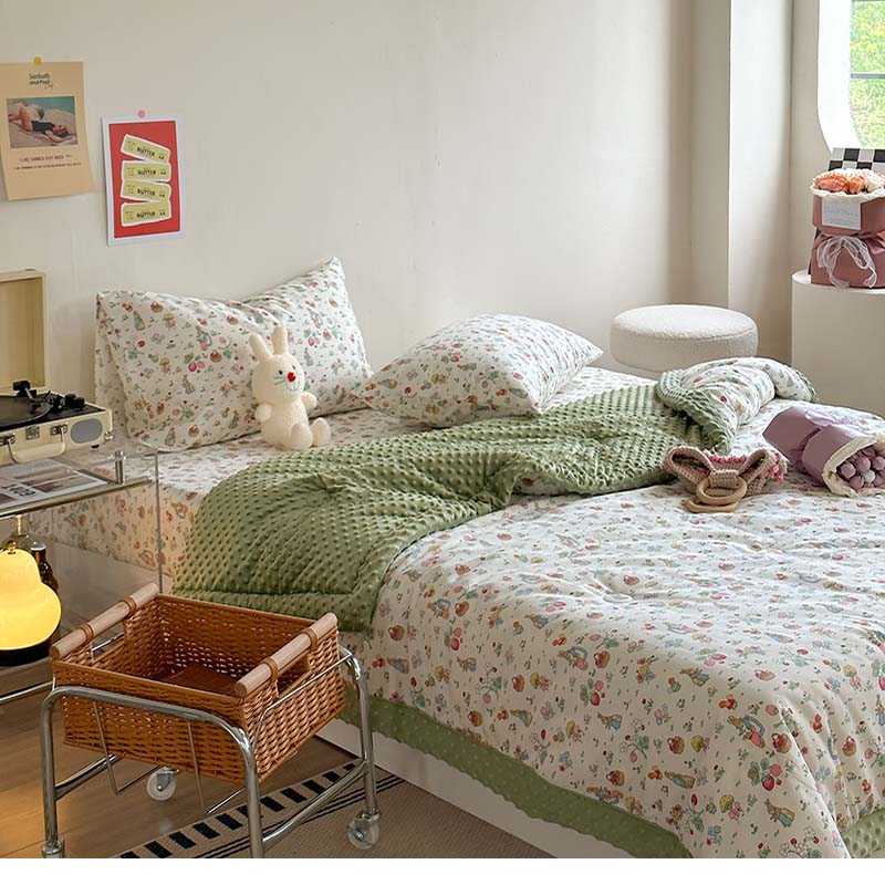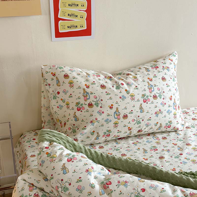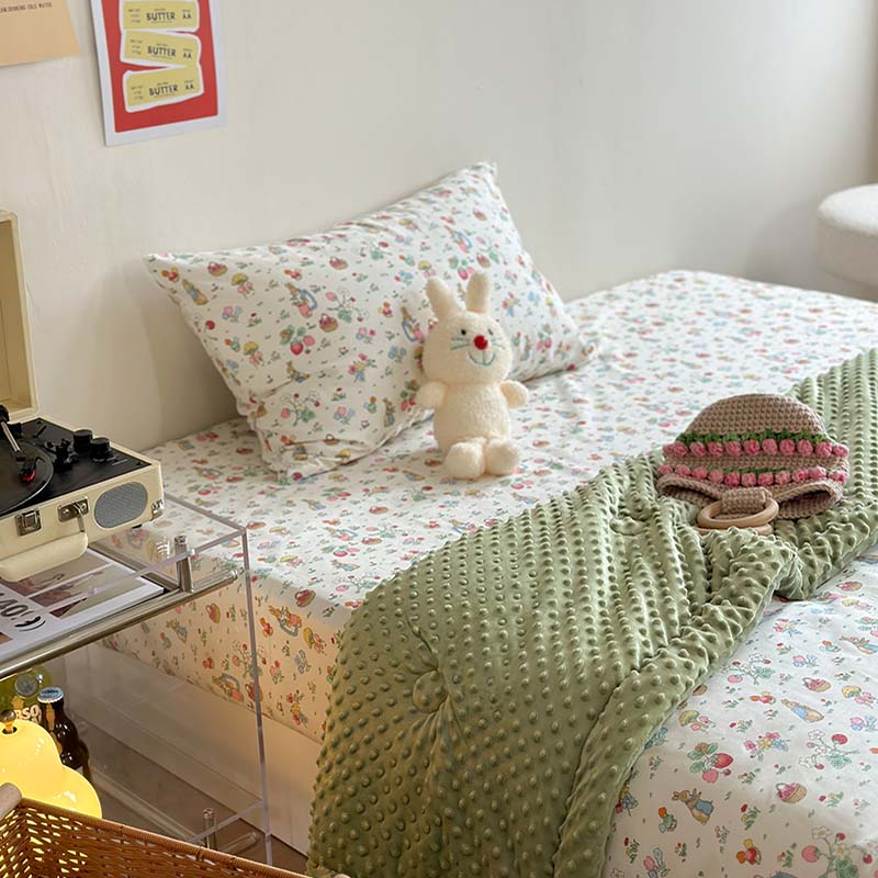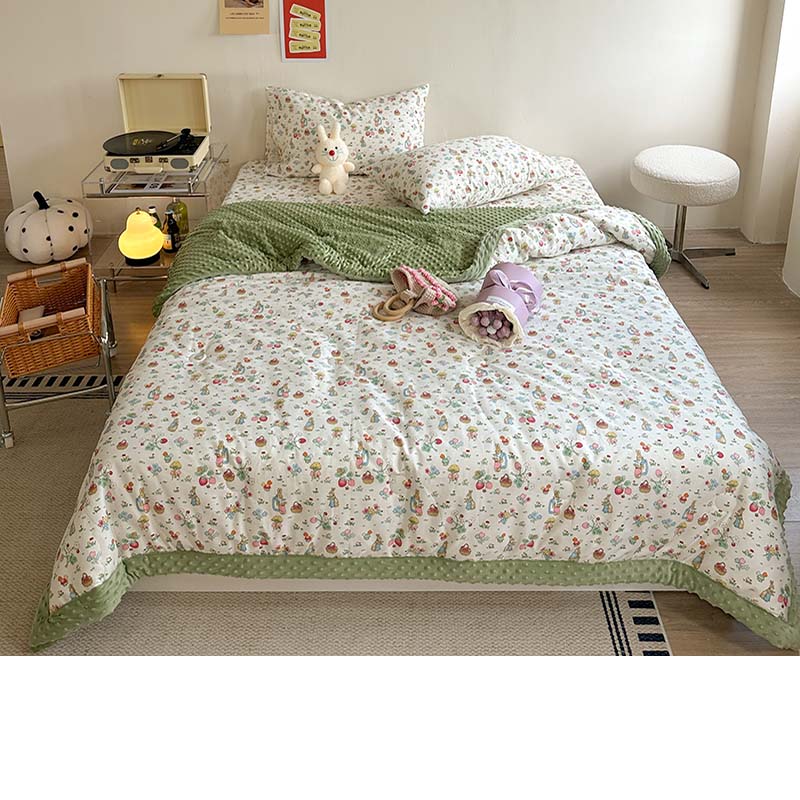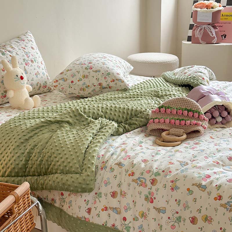 星期八 2023新款复古碎花全棉豆豆春秋被四件套 竹篮兔
