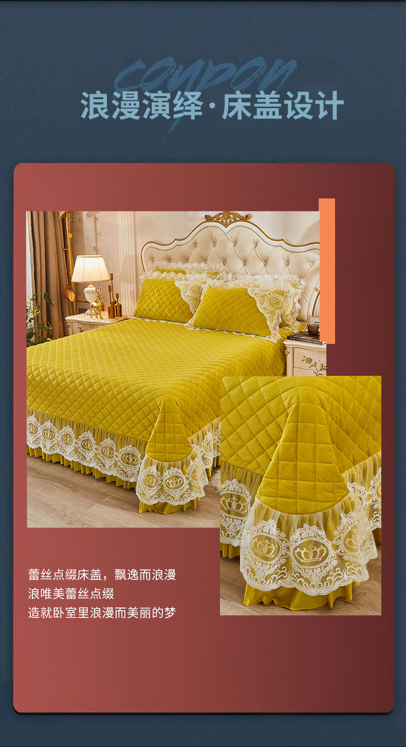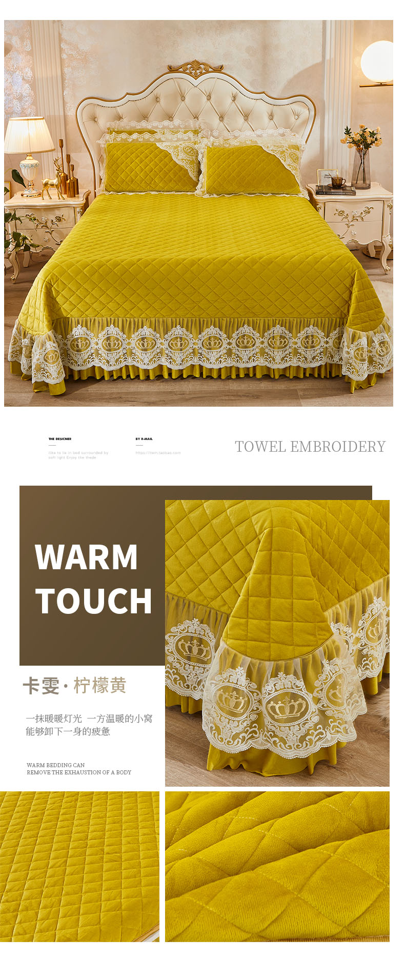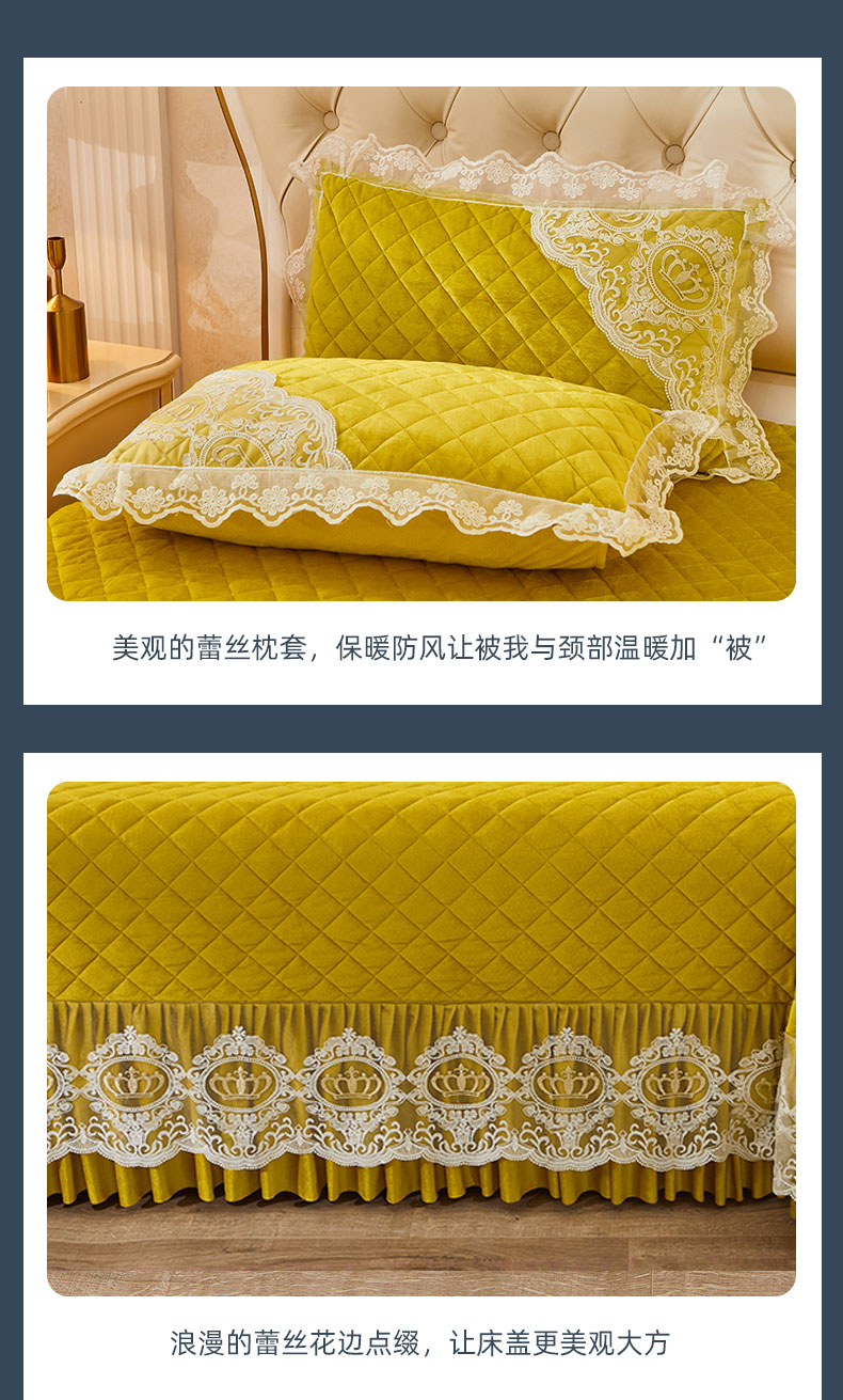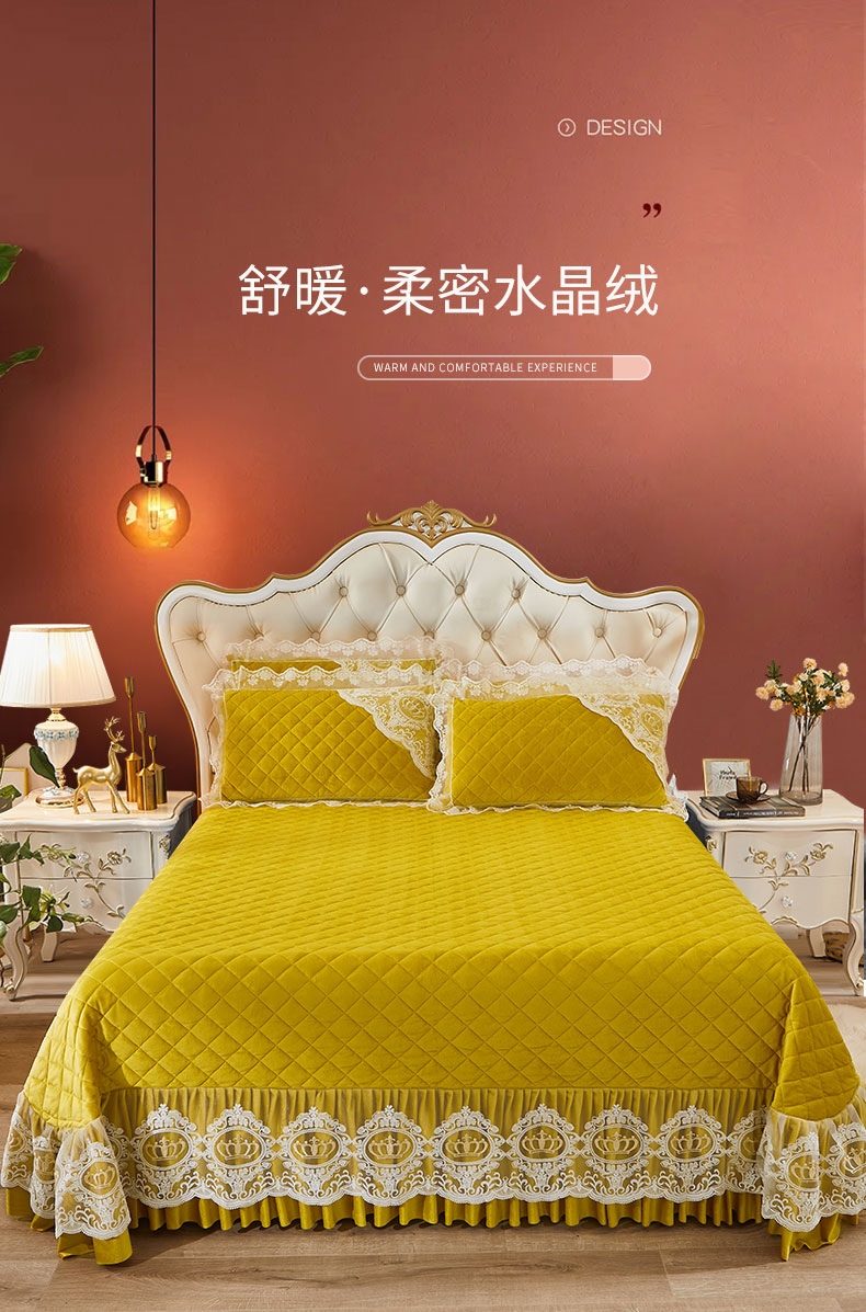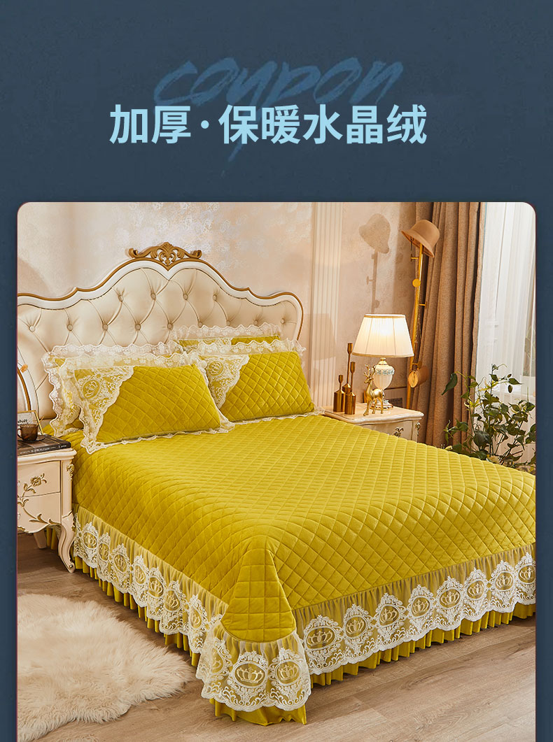 商品名称:恋尚 2023新款可脱卸水晶绒夹棉床盖卡雯系列 柠檬黄