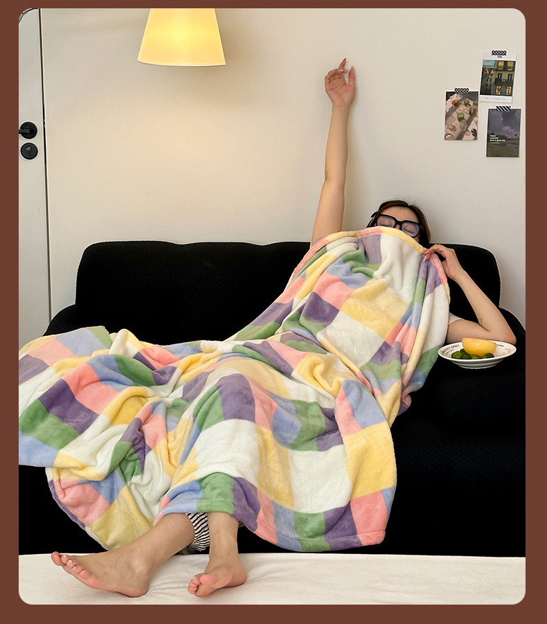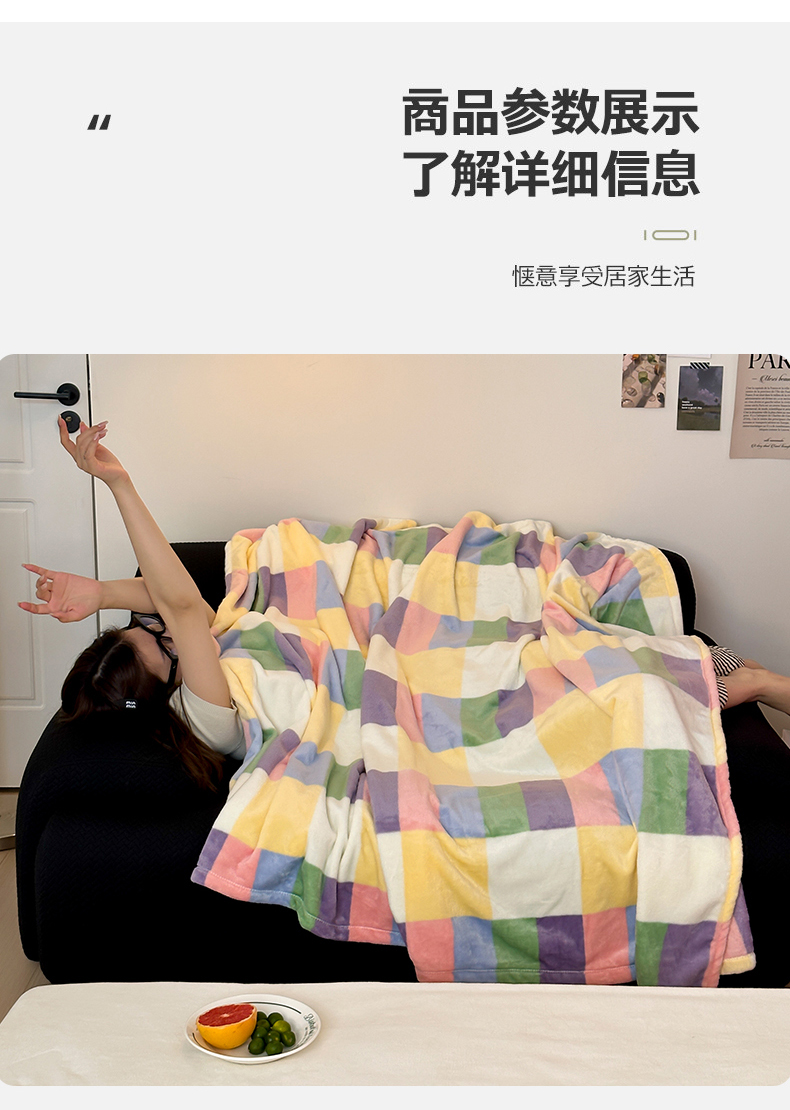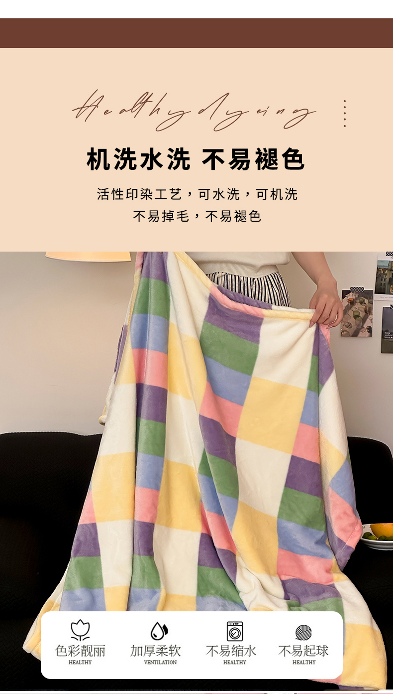 (总)桃喜 2024新款牛奶绒羊羔绒条纹系列盖绒毛毯午休毯多功能毛毯-场景二,多巴胺彩条,蓝咖条纹,栗子粉条纹,美式复古红蓝条,美式复古黄蓝条