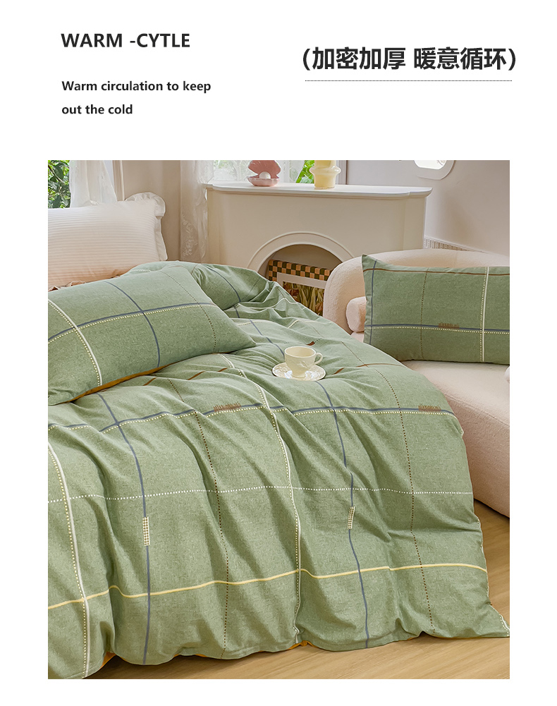 感遇家纺 2023新款印花系列全棉生态磨毛加厚四件套 贝菡 绿