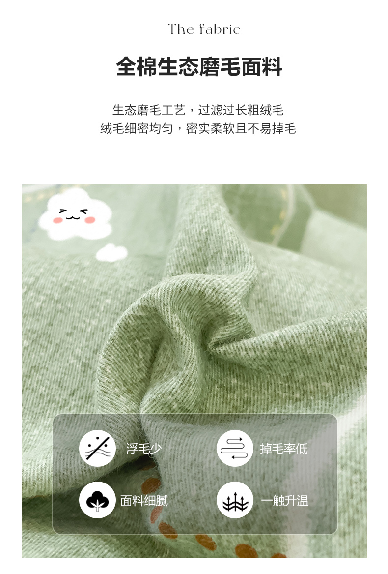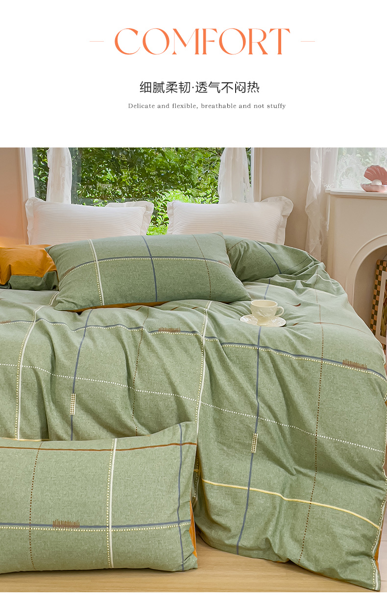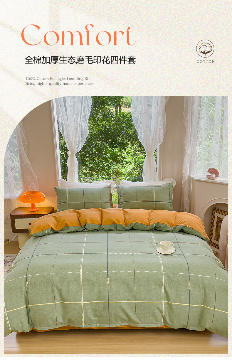 商品名称:感遇家纺 2023新款印花系列全棉生态磨毛加厚四件套 贝菡 绿