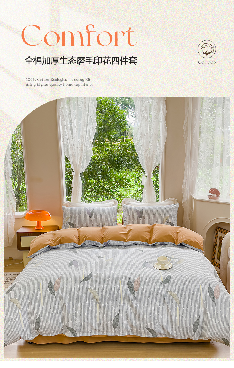 商品名称:感遇家纺 2023新款印花系列全棉生态磨毛加厚四件套 秋凉