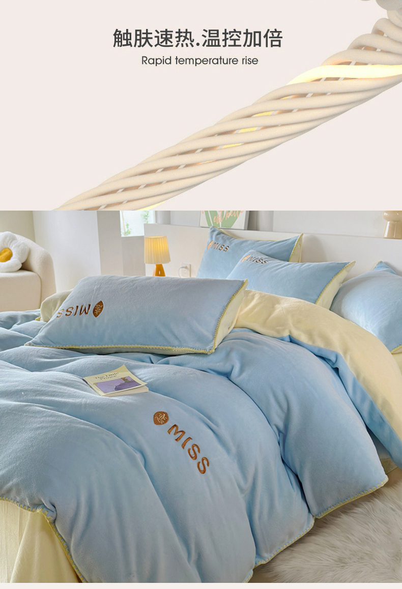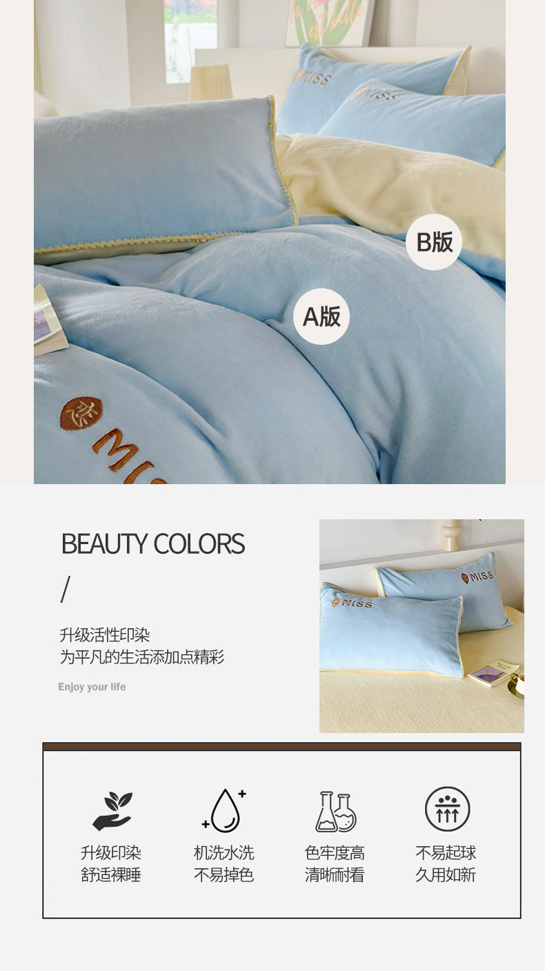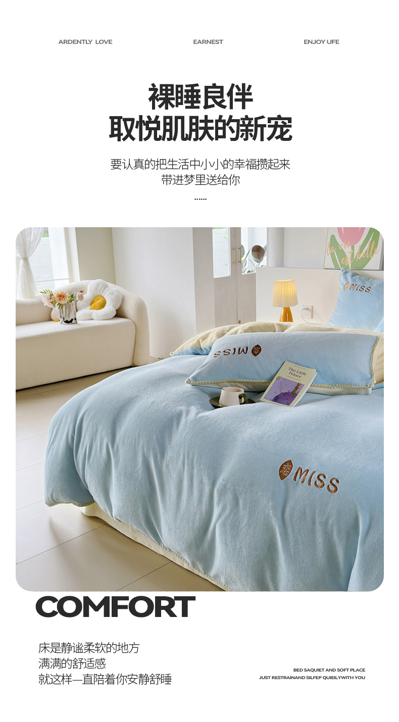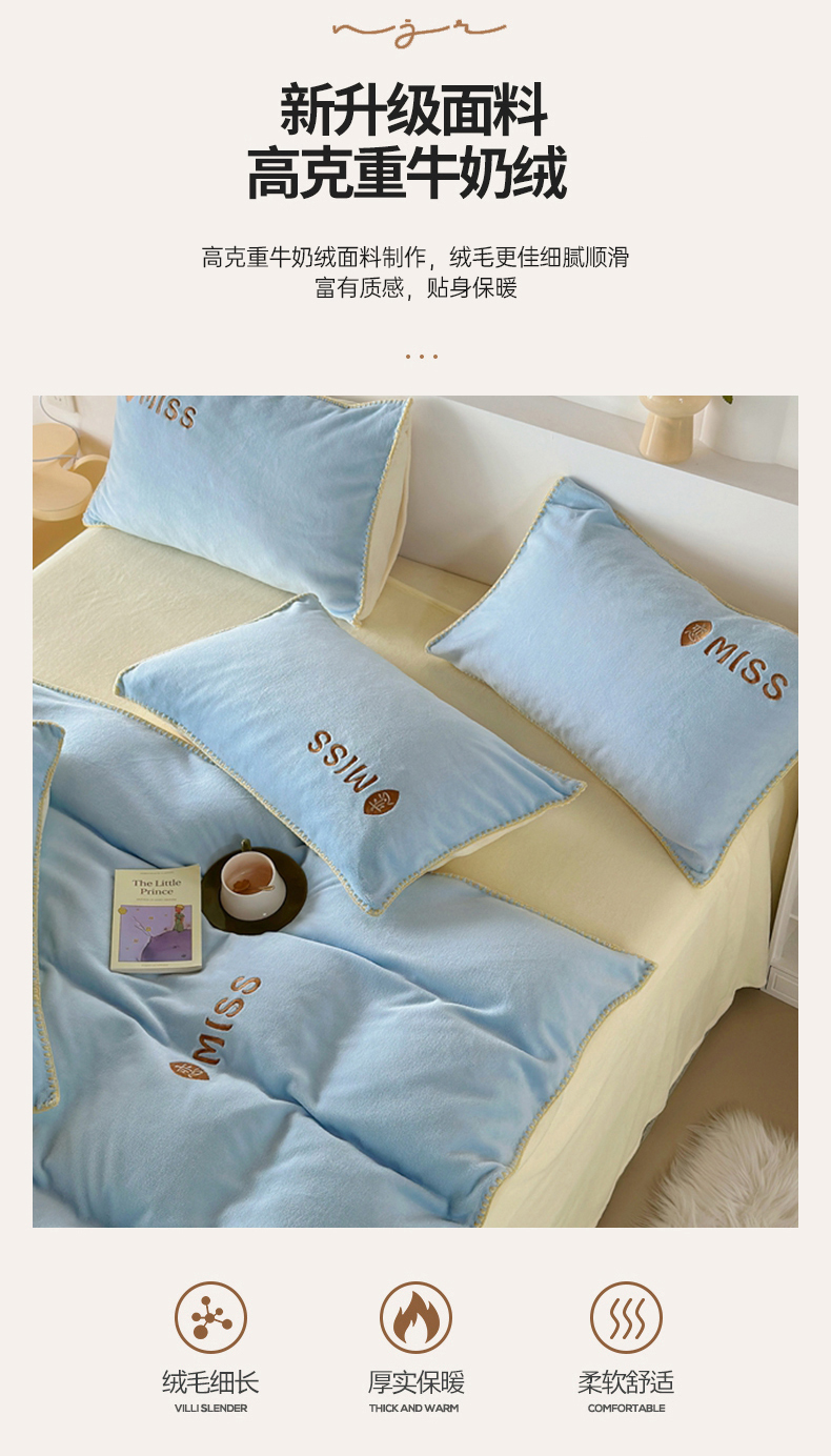 当前位置: 91家纺网 > 商品网购 > 床品套件 > 四件套 > 牛奶绒四件套 > 眷恋 2024新款贝壳边牛奶绒刺绣四件套 恋-天空蓝+奶黄