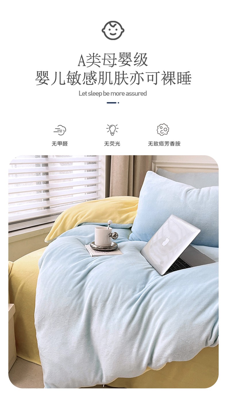 当前位置: 91家纺网 > 商品网购 > 床品套件 > 四件套 > 牛奶绒四件套 > 宜家坊 ins风小红书博主推荐A类高克重纯色双拼牛奶绒四件套 浅蓝芝士