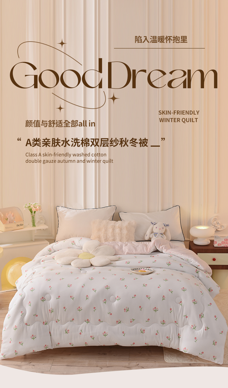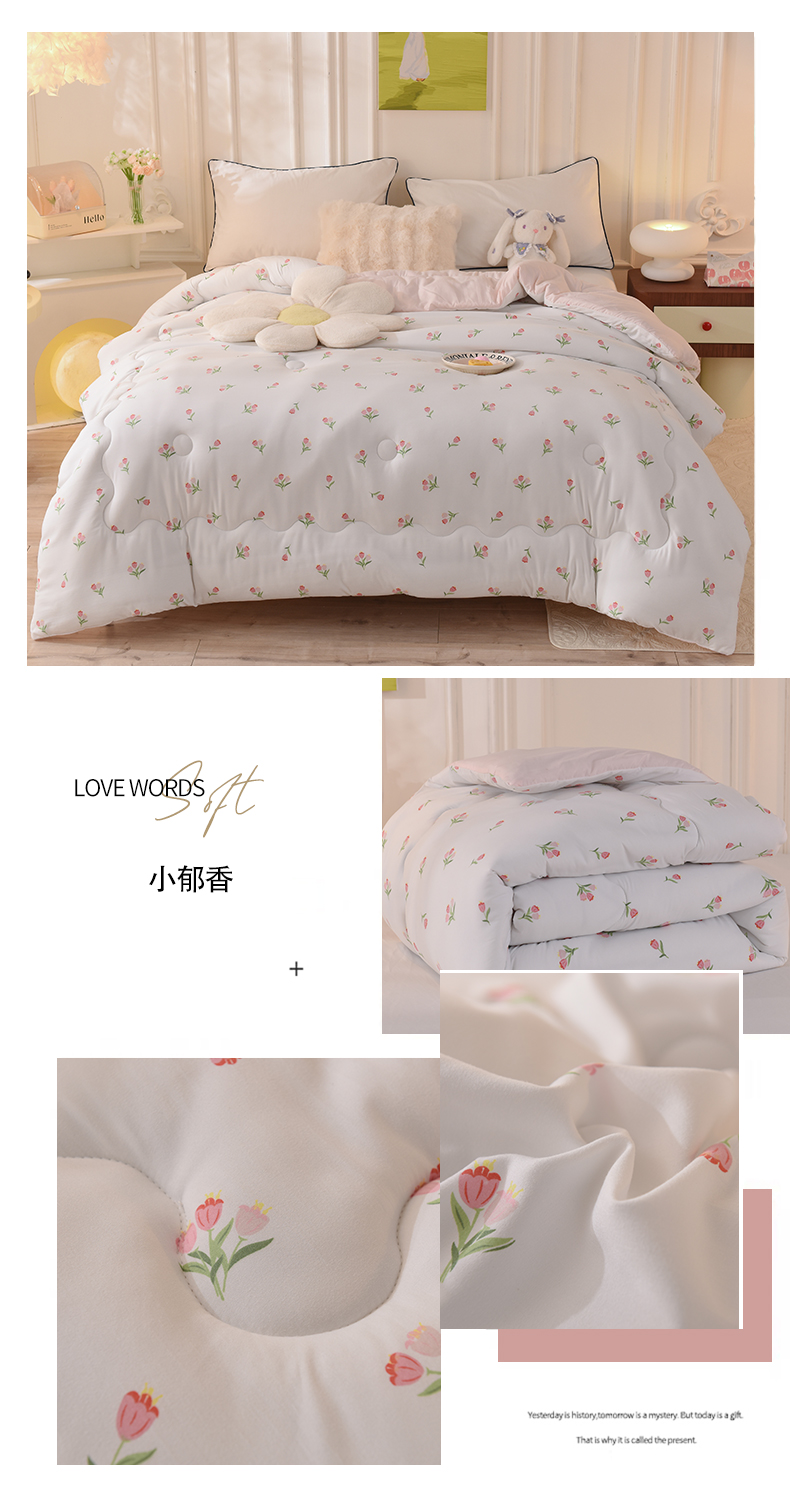 • 91家纺网 家纺一手货源 找家纺 妖妖家纺 2023妖妖超柔水洗双层纱冬被 小郁香