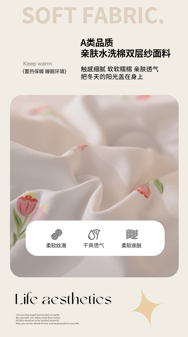 妖妖家纺 2023妖妖超柔水洗双层纱冬被 小郁香