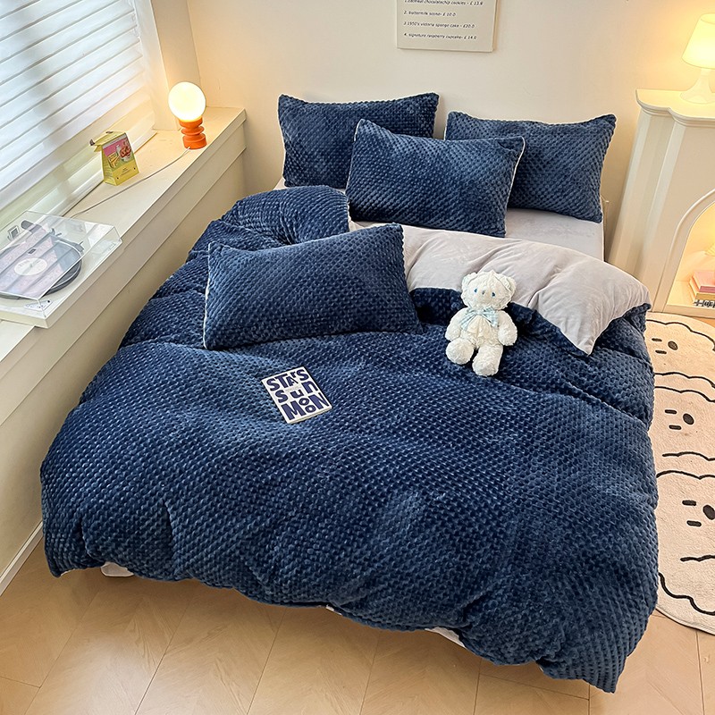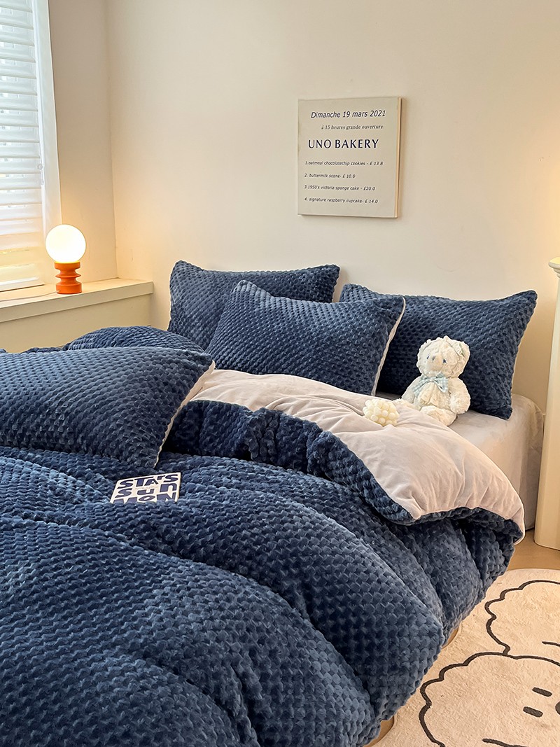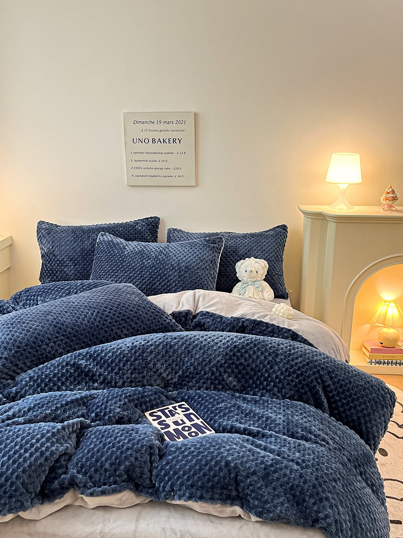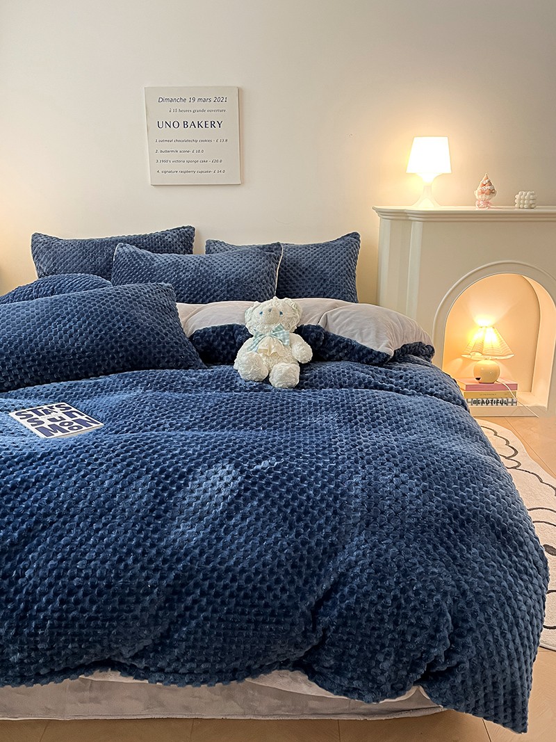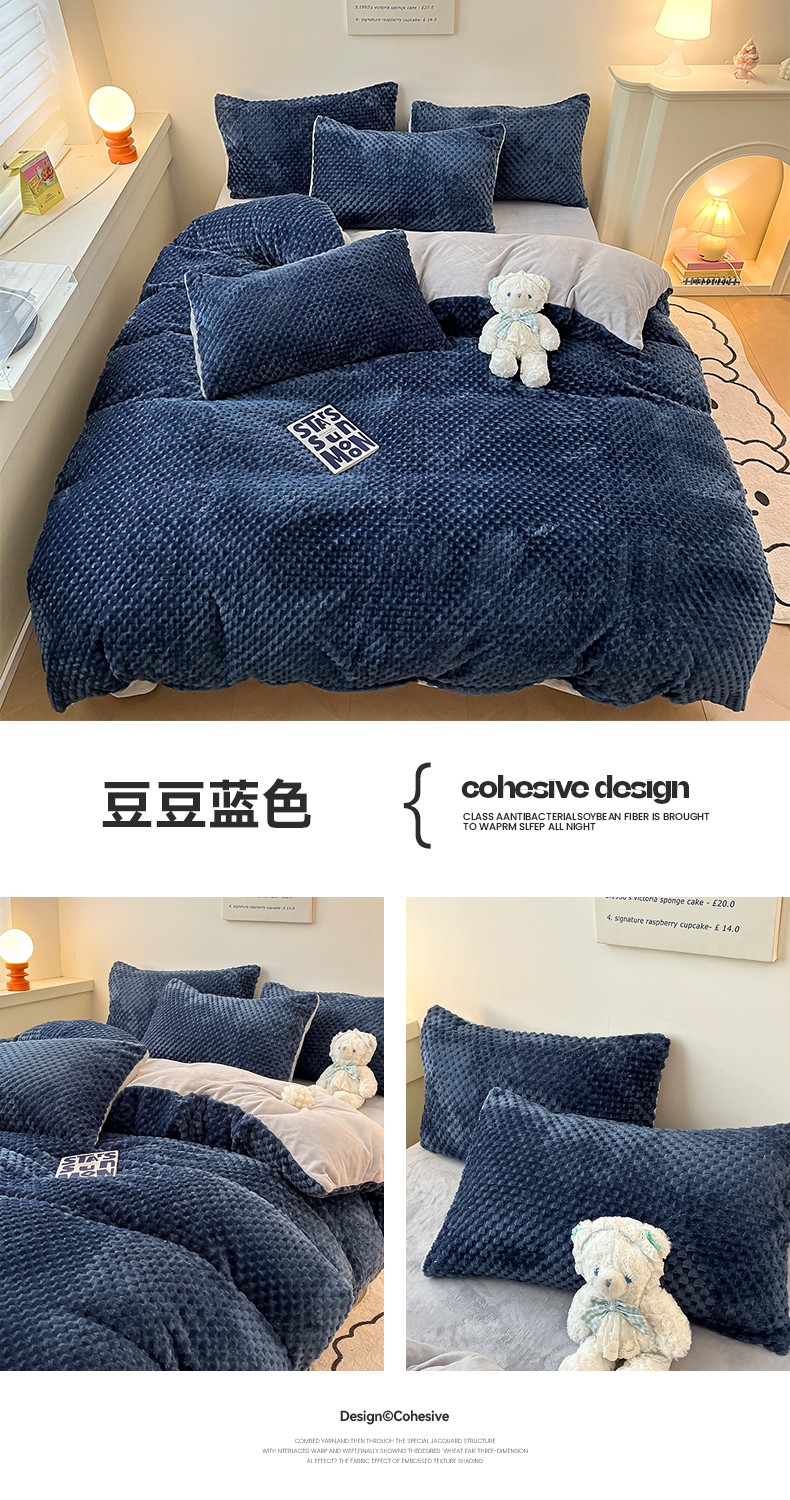 澳梵家居 2023新款印花豆豆绒牛奶绒四件套 豆豆蓝色