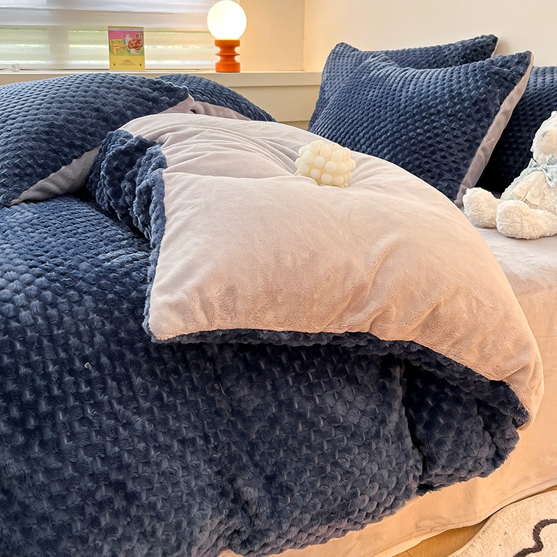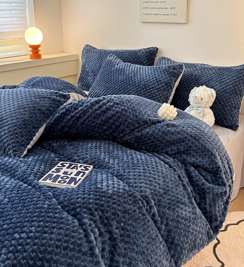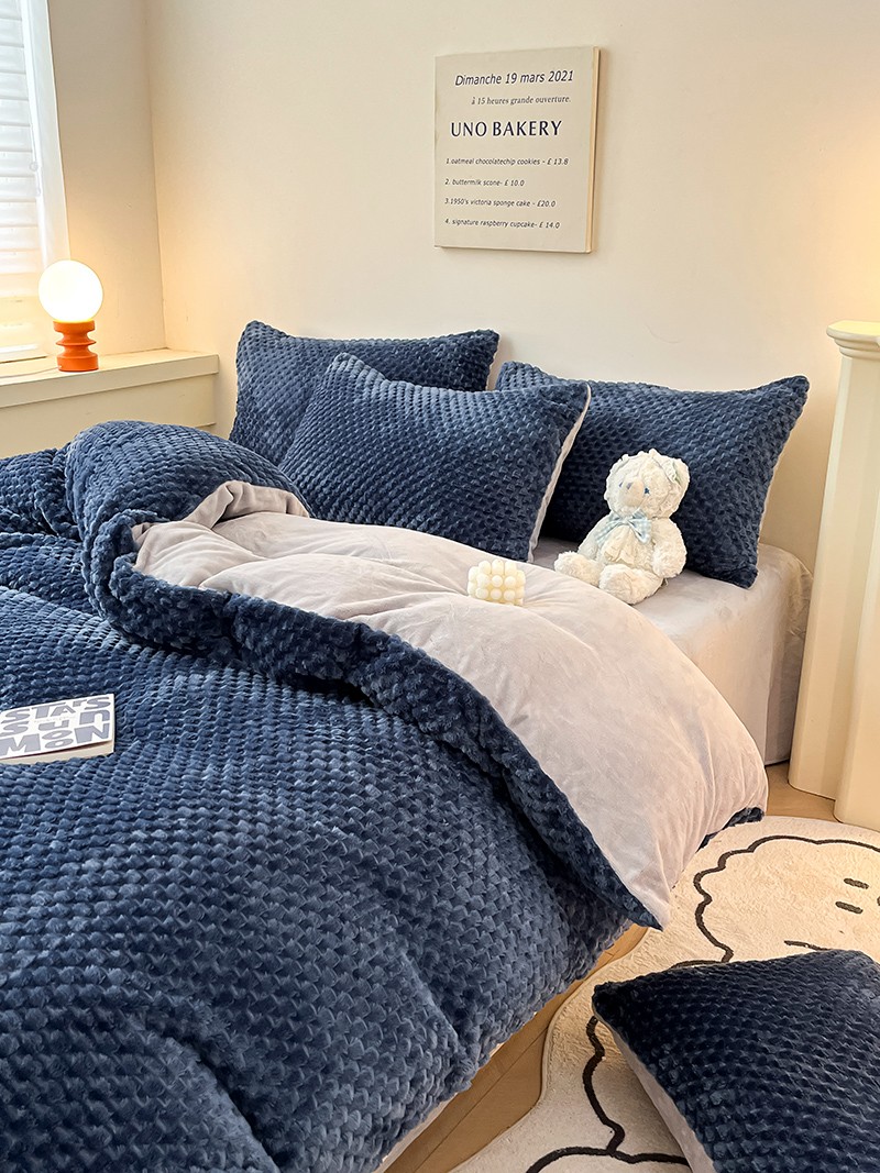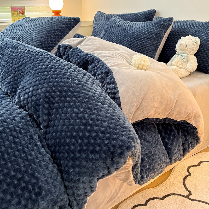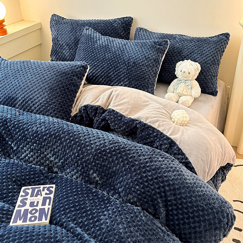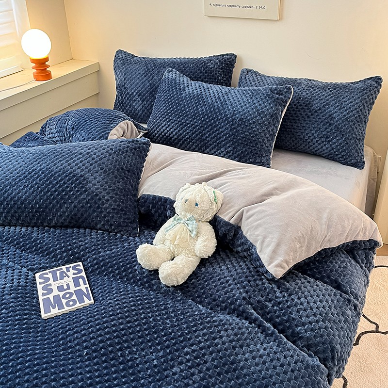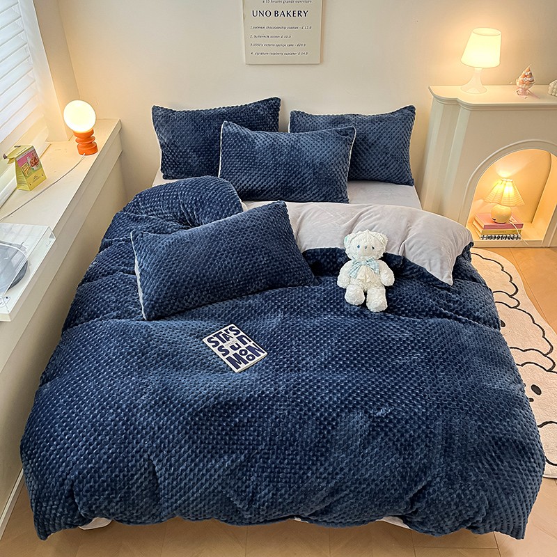 澳梵家居 2023新款印花豆豆绒牛奶绒四件套 豆豆蓝色