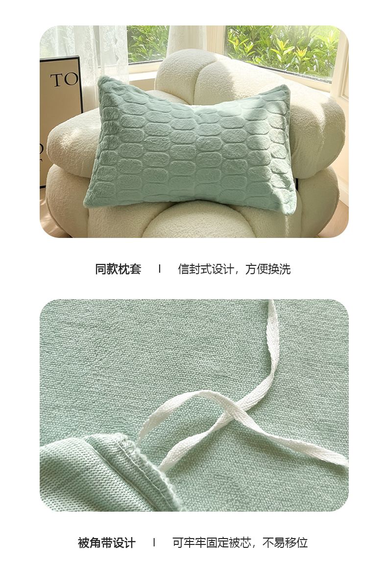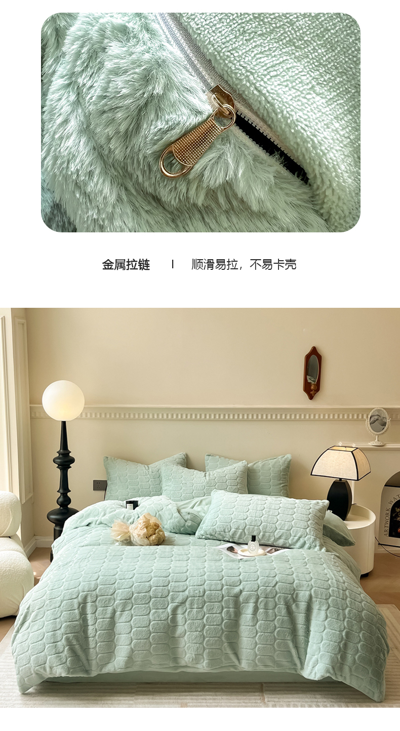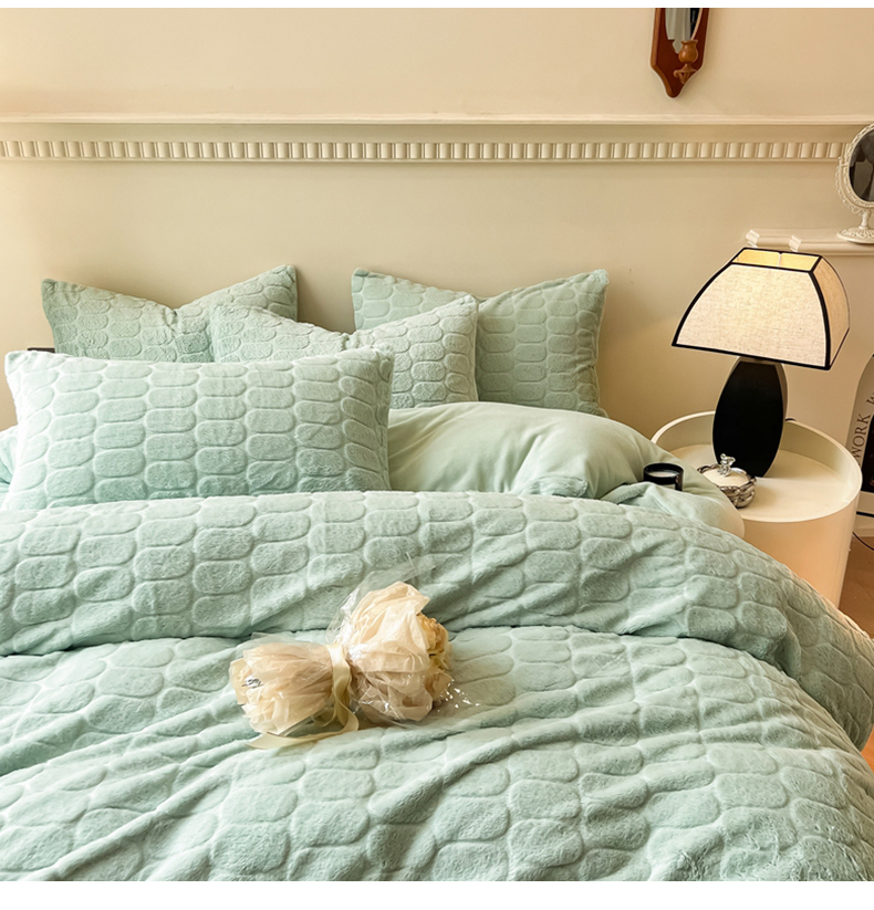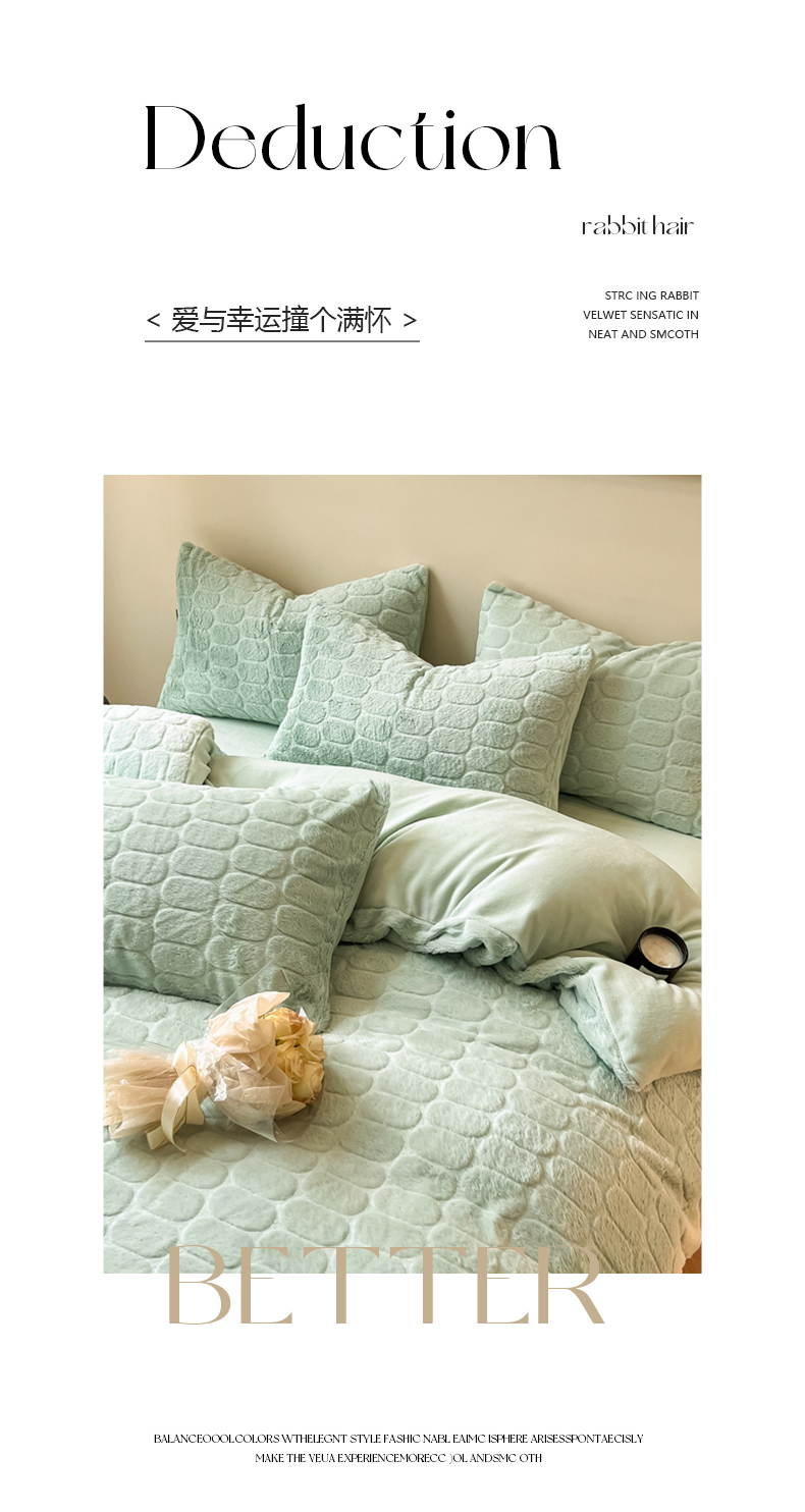 商品名称:慕尚家纺 2025新款280g兔毛绒四件套-洛卡 洛卡嫩绿