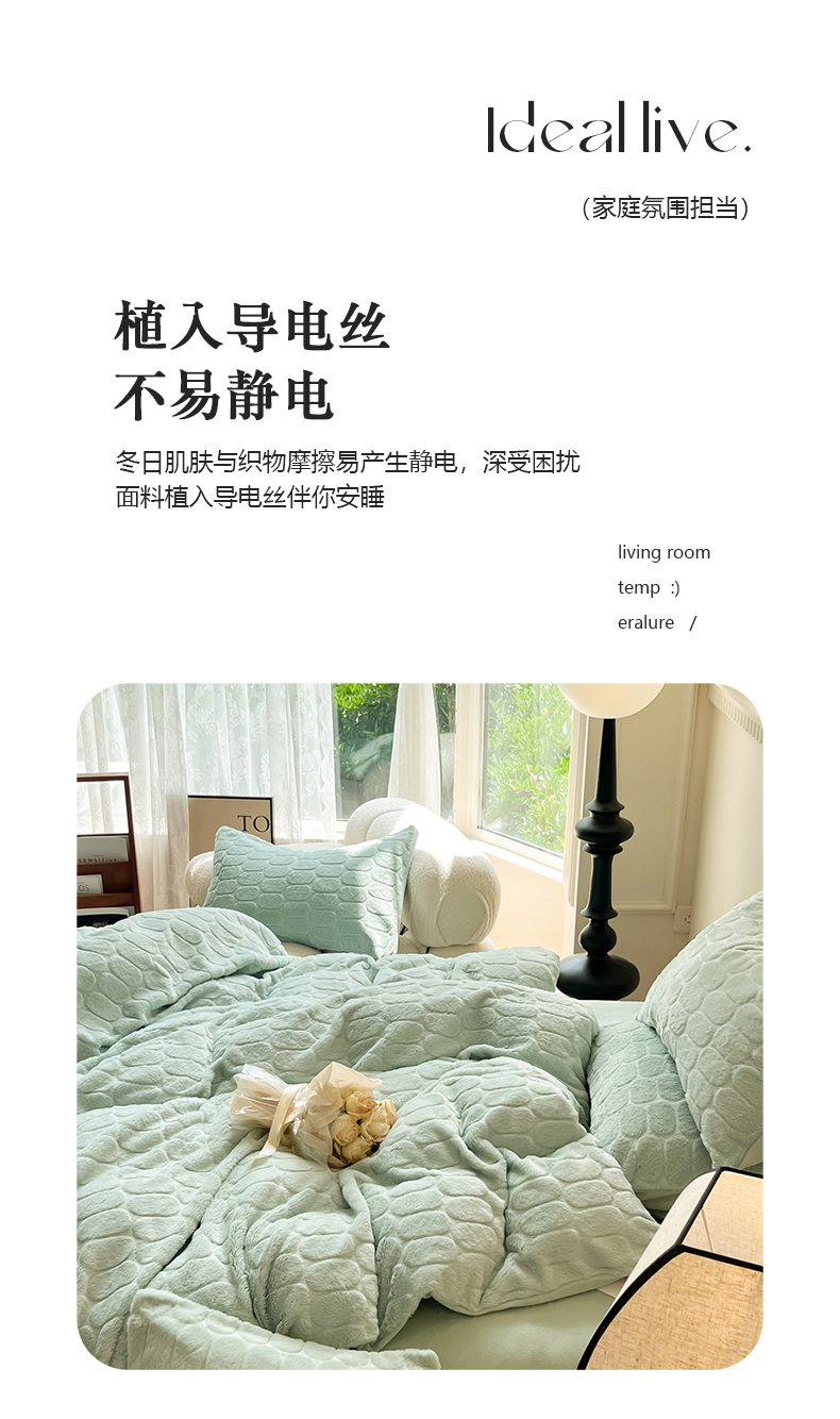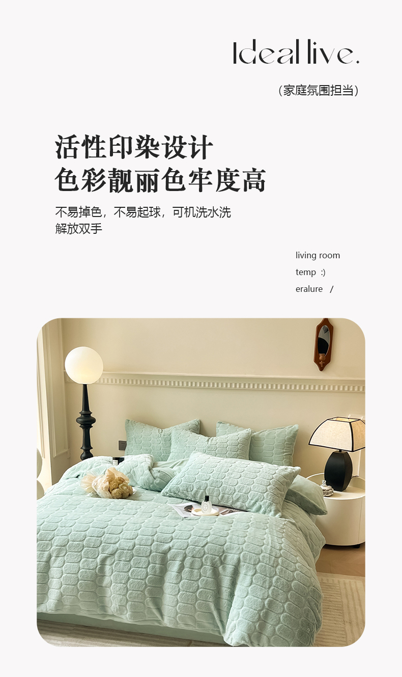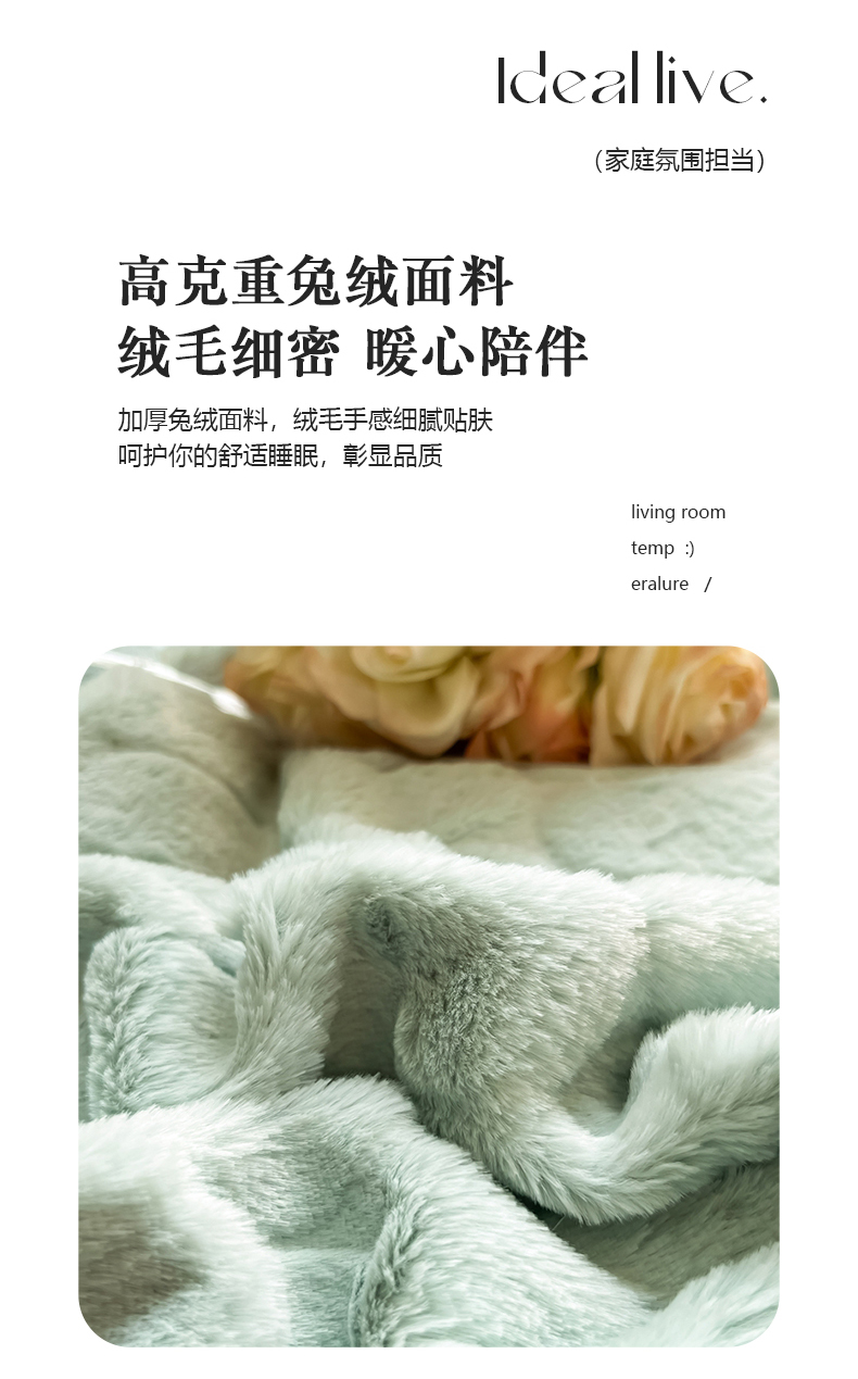 商品名称:慕尚家纺 2025新款280g兔毛绒四件套-洛卡 洛卡嫩绿