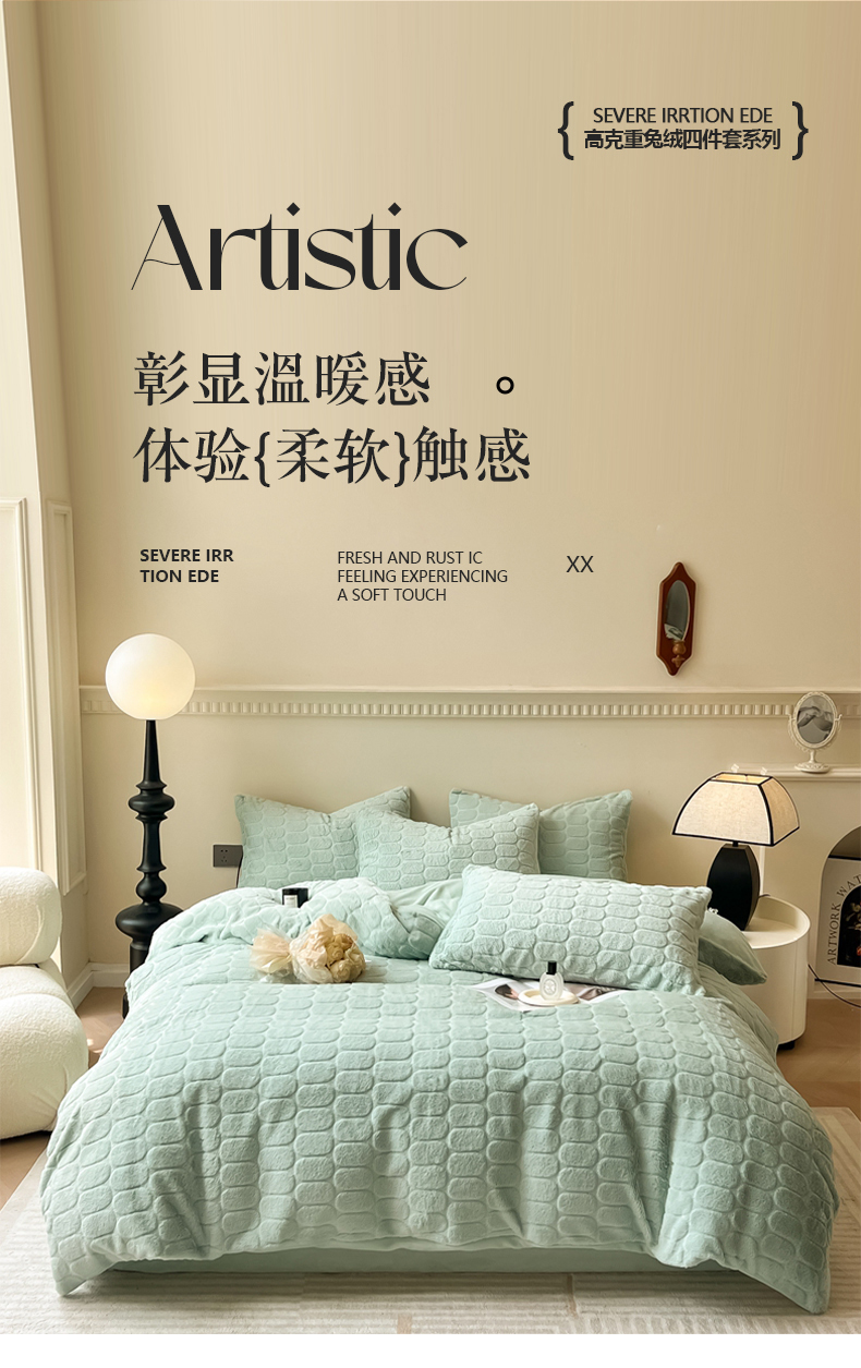 慕尚家纺 2025新款280g兔毛绒四件套-洛卡 洛卡嫩绿