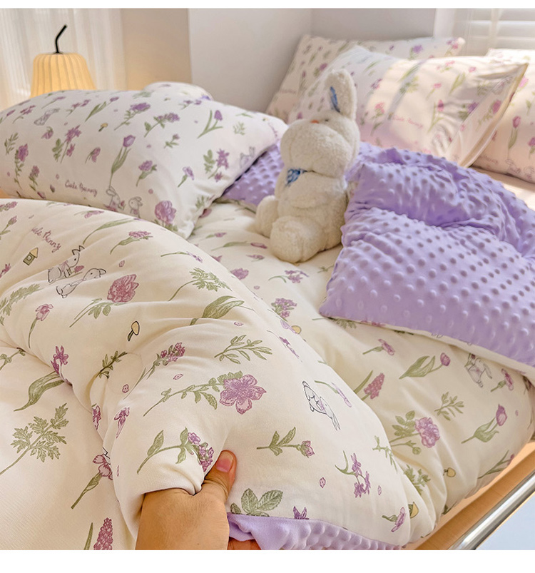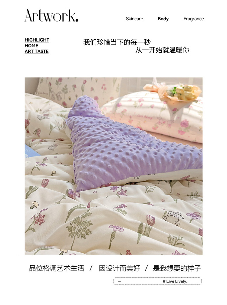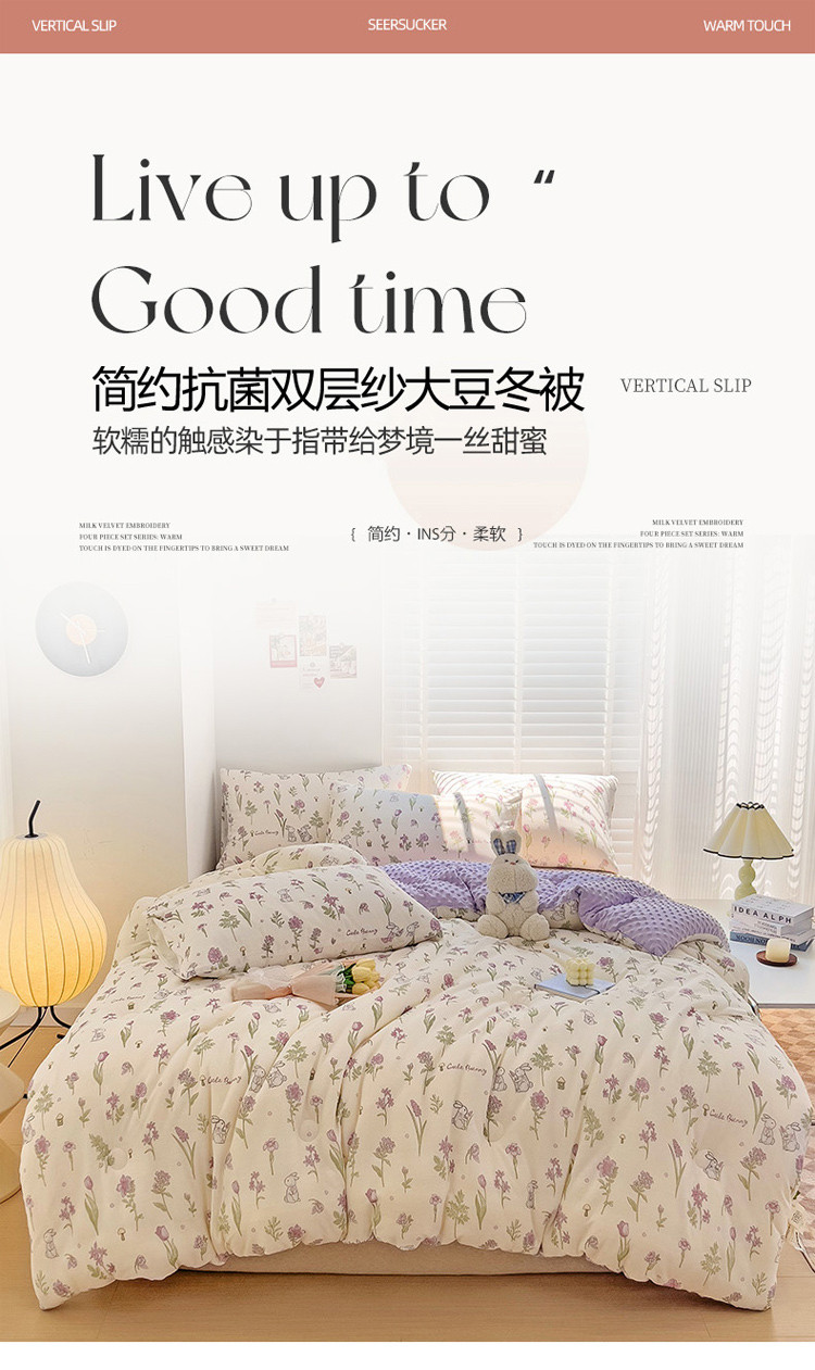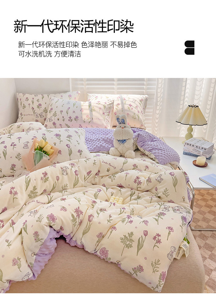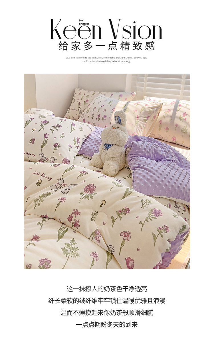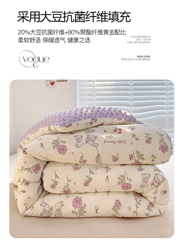 • 91家纺网 家纺一手货源 找家纺 寐居 2023新款水洗双层纱+豆豆绒 A类大豆抗菌被莫奈花园