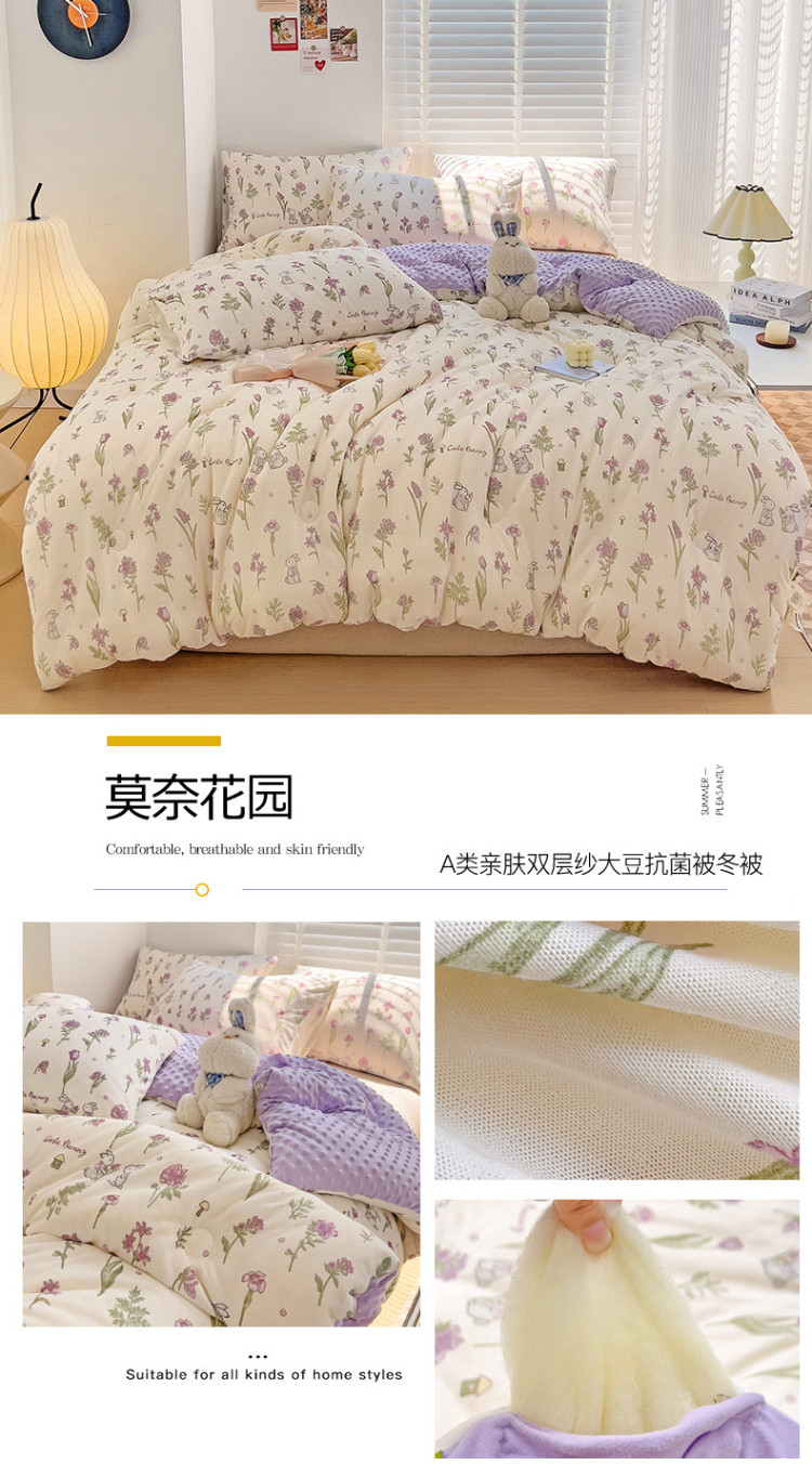 寐居 2023新款水洗双层纱+豆豆绒 A类大豆抗菌被莫奈花园