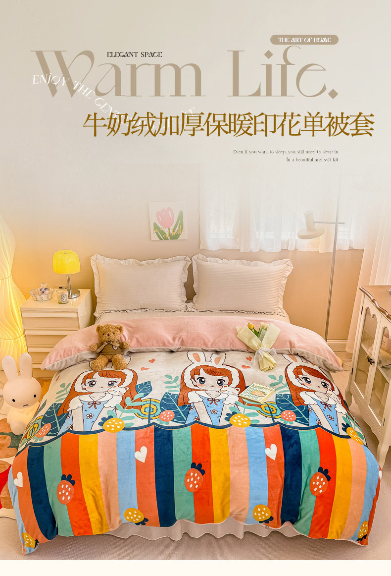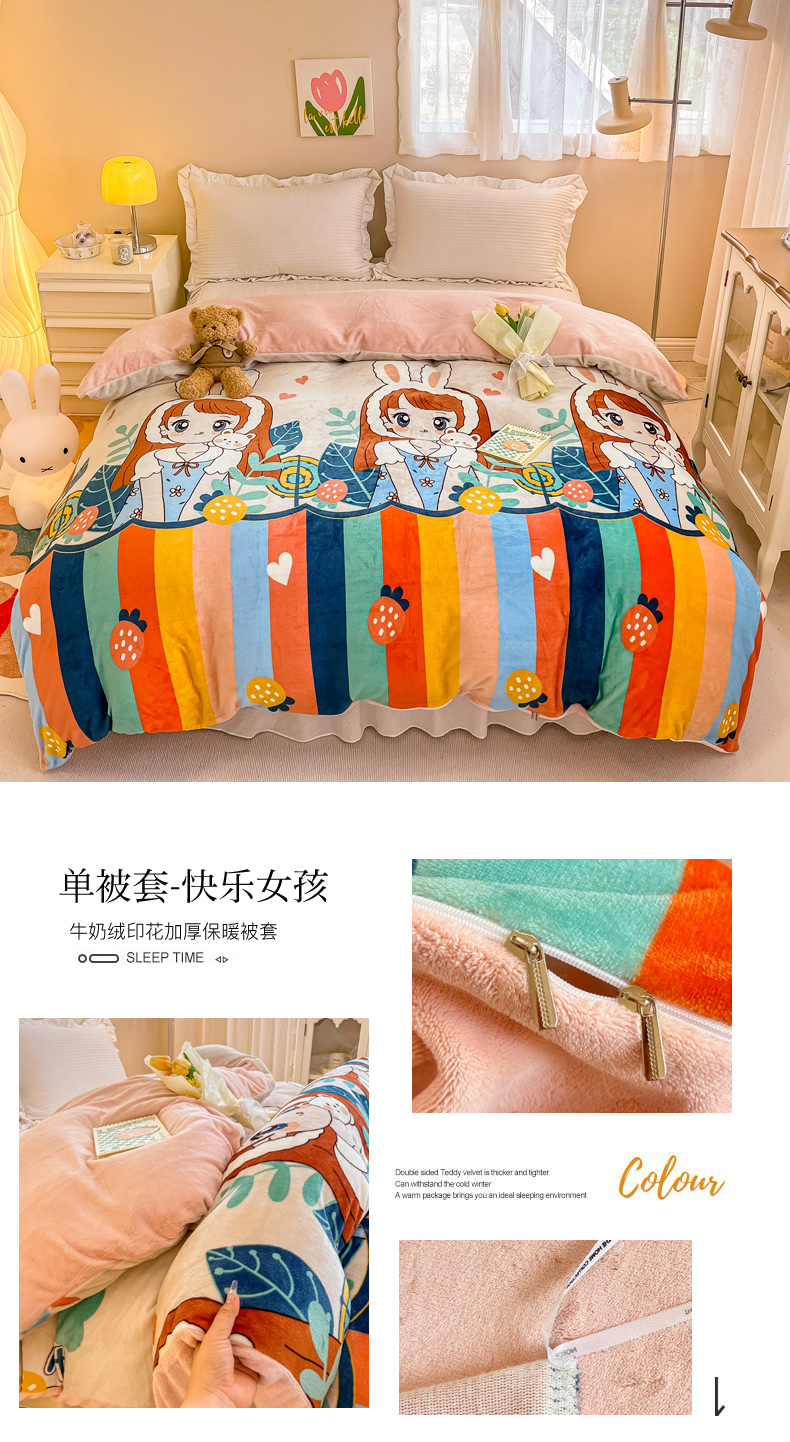 当前位置: 91家纺网 > 商品网购 > 床品套件 > 四件套 > 牛奶绒四件套 > 眠博士 2023新款系列9印花简单款三件套 简单款单被套-快乐女孩