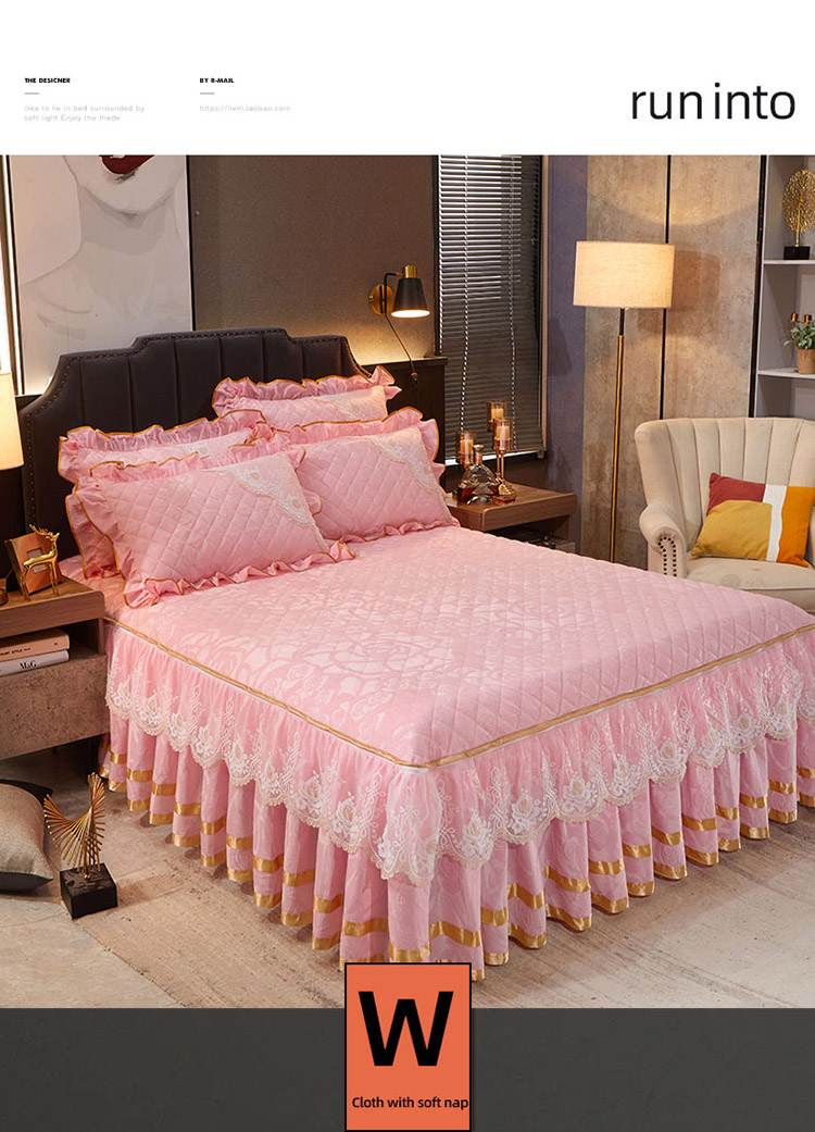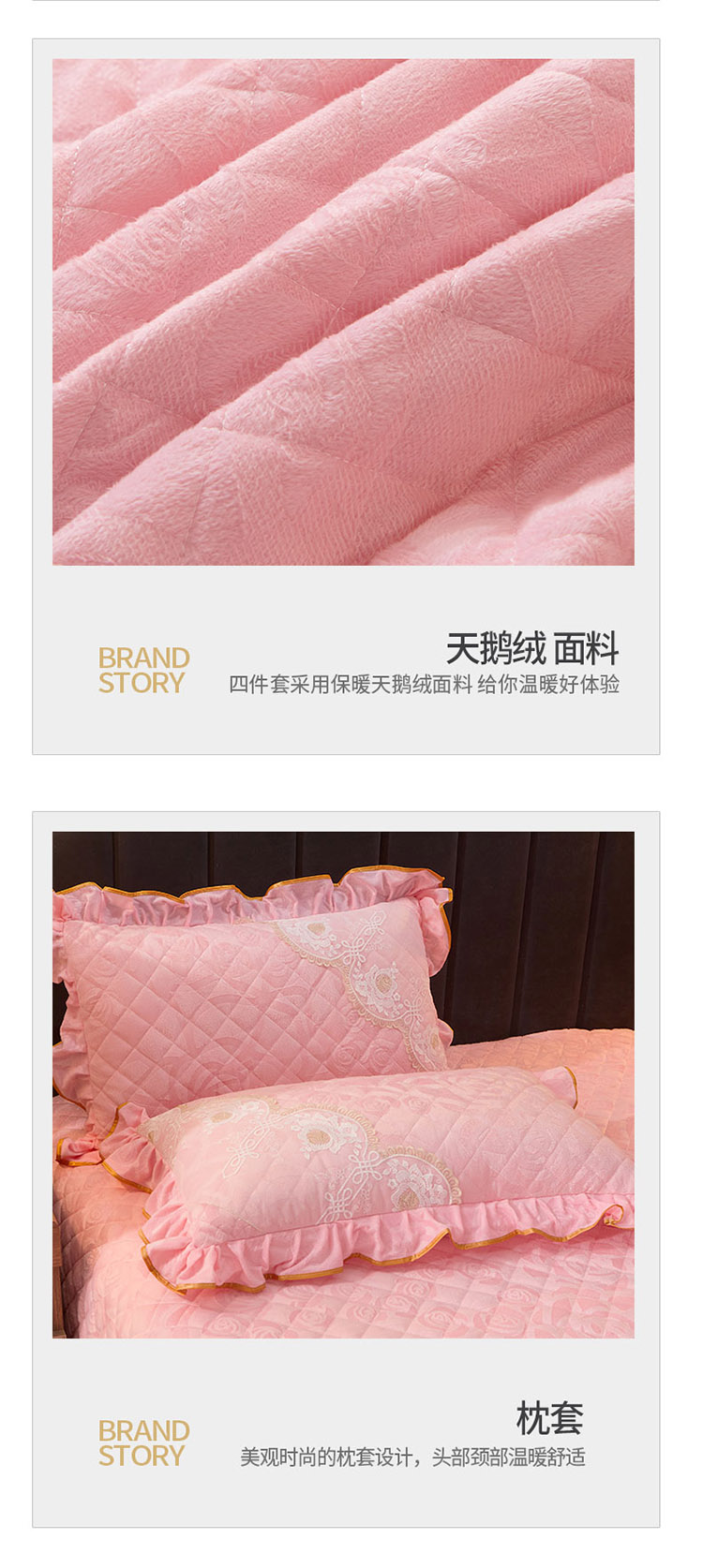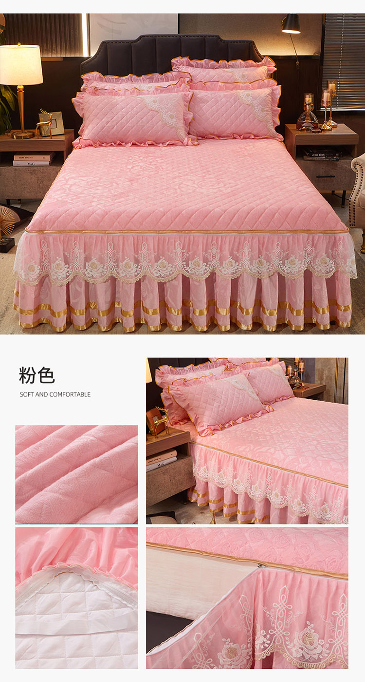 恋尚 2023新款天鹅绒可脱卸夹棉床裙 床盖四件套 床裙 粉色