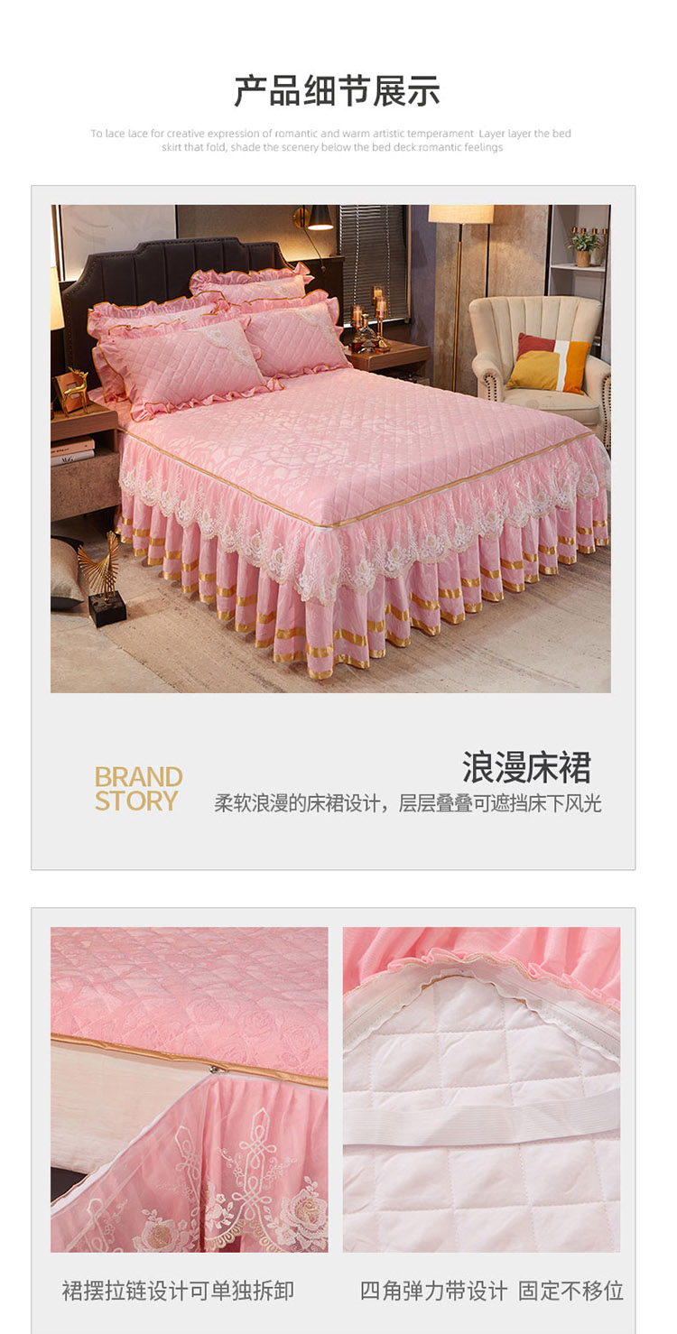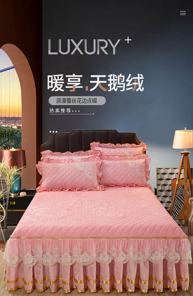 商品名称:恋尚 2023新款天鹅绒可脱卸夹棉床裙 床盖四件套 床裙 粉色