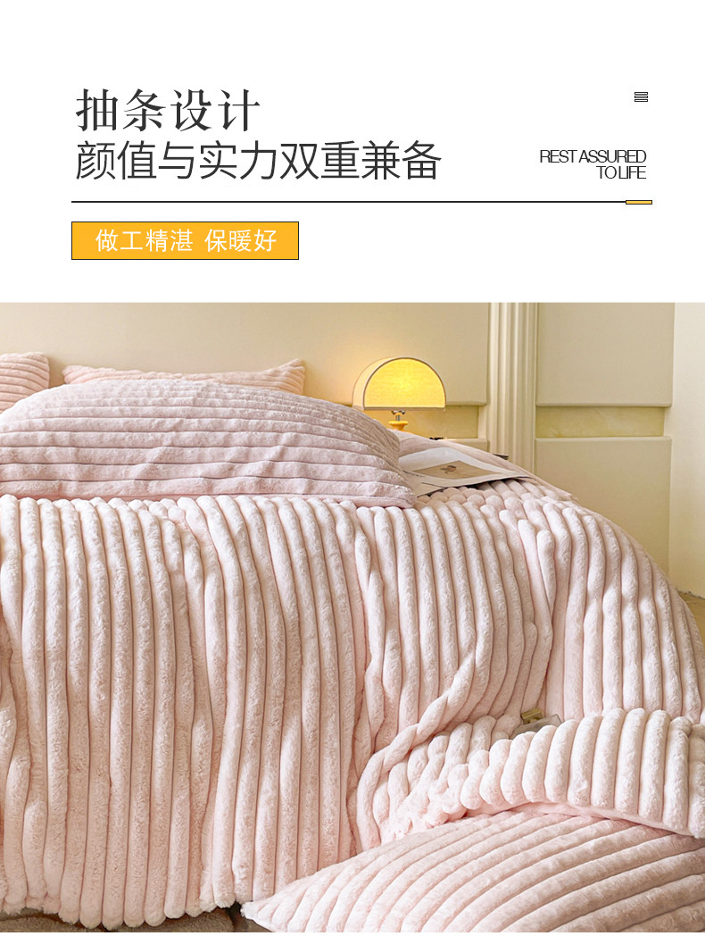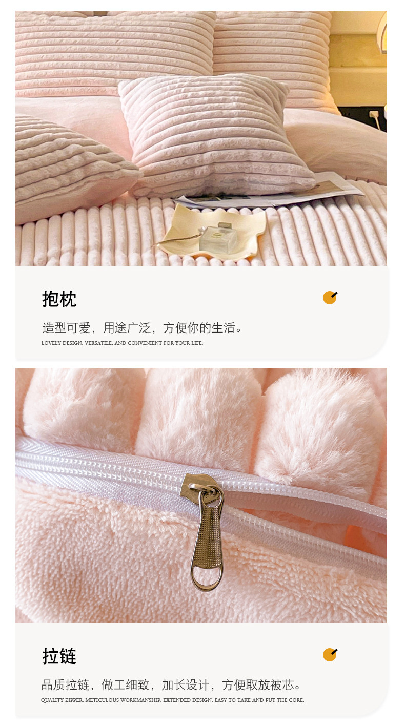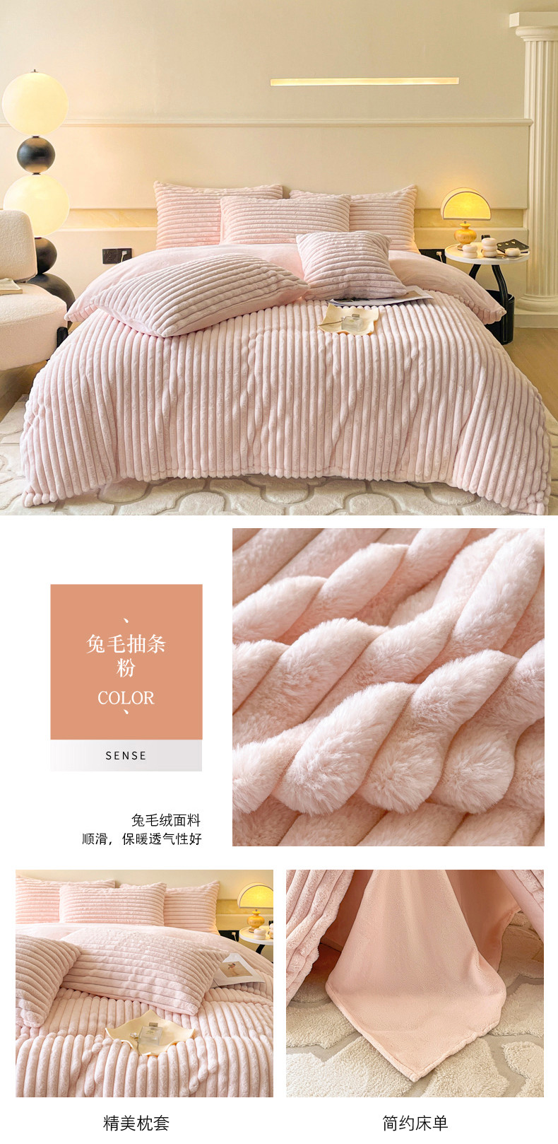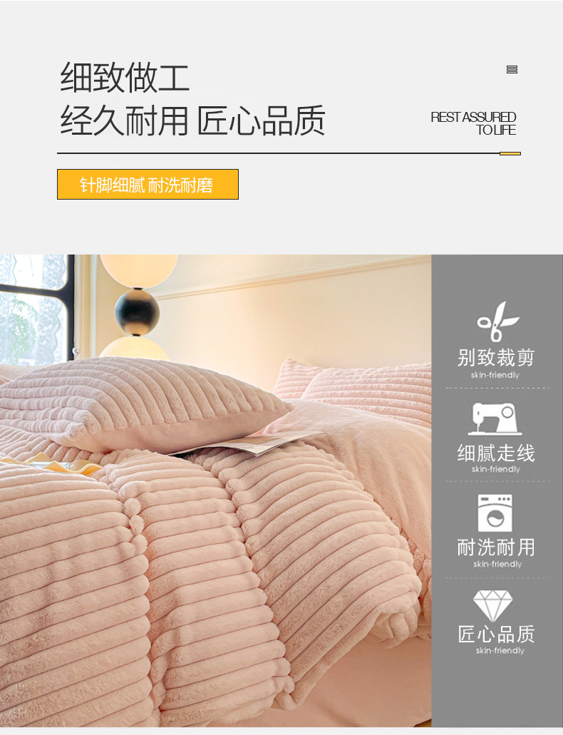 当前位置: 91家纺网 > 商品网购 > 床品套件 > 四件套 > 牛奶绒四件套 > 金爱家 2023新款全消光A类纯色獭兔绒立体牛奶绒四件套 兔毛抽条粉