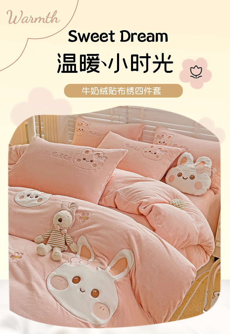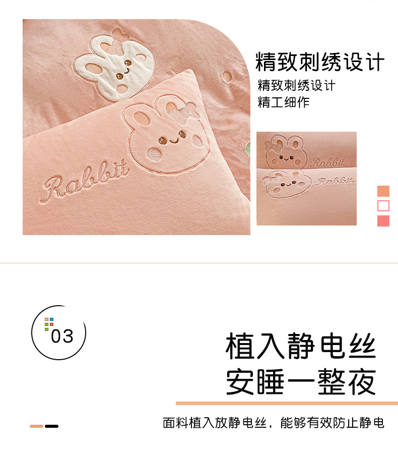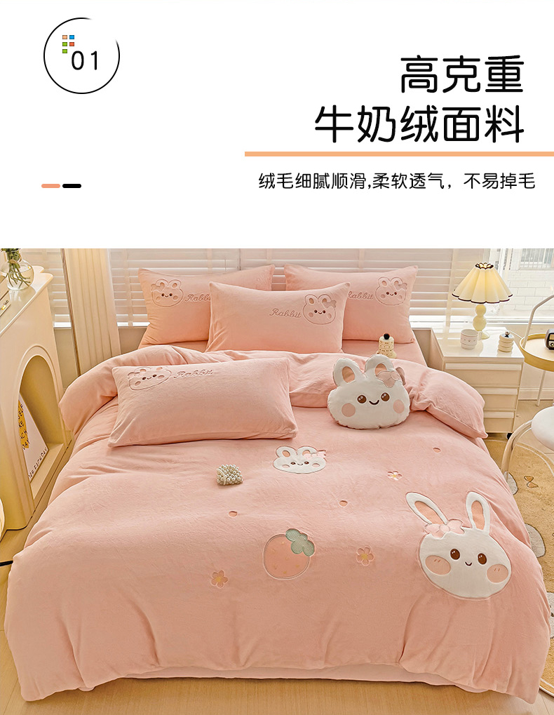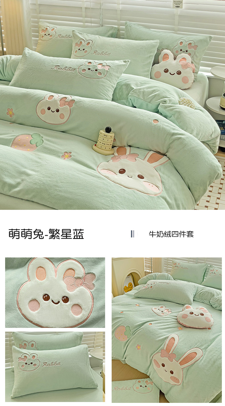 当前位置: 91家纺网 > 商品网购 > 床品套件 > 四件套 > 牛奶绒四件套 > (总)娜娜 2023新款牛奶绒毛巾绣四件套 萌萌兔系列