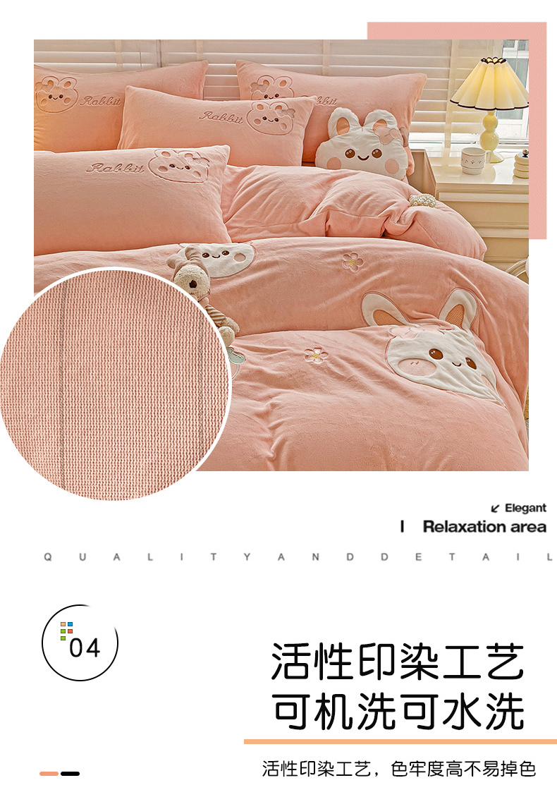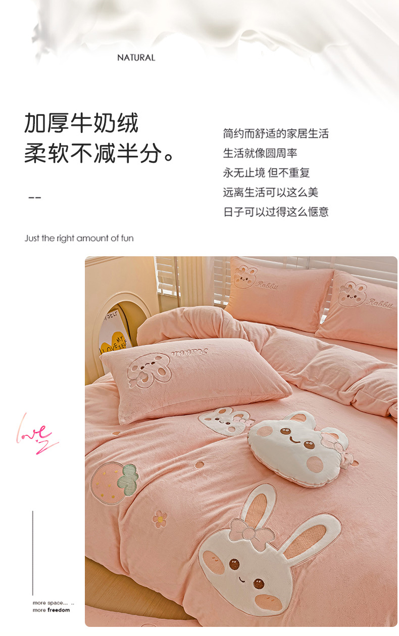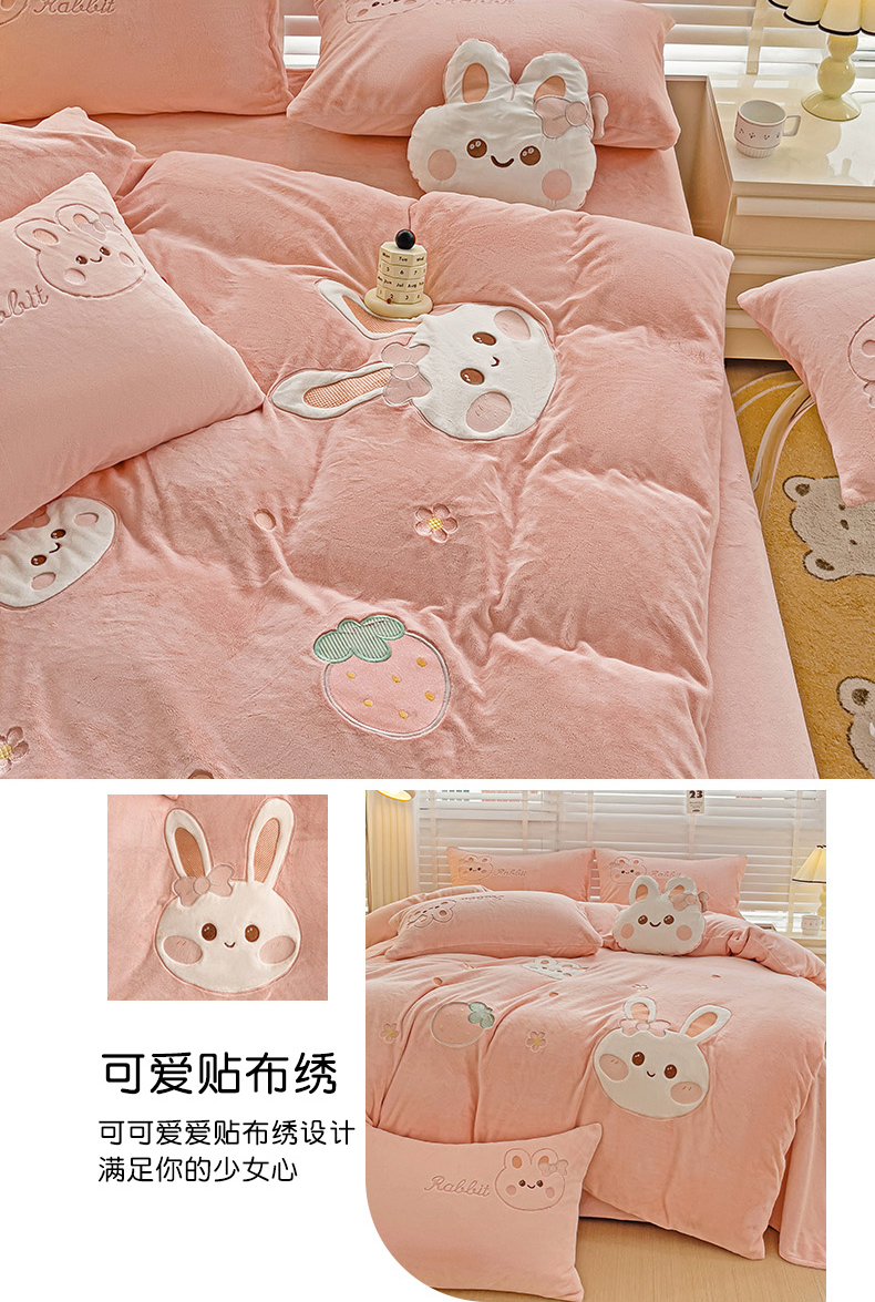 当前位置: 91家纺网 > 商品网购 > 床品套件 > 四件套 > 牛奶绒四件套 > (总)娜娜 2023新款牛奶绒毛巾绣四件套 萌萌兔系列