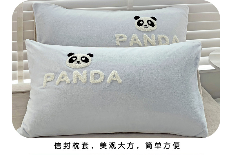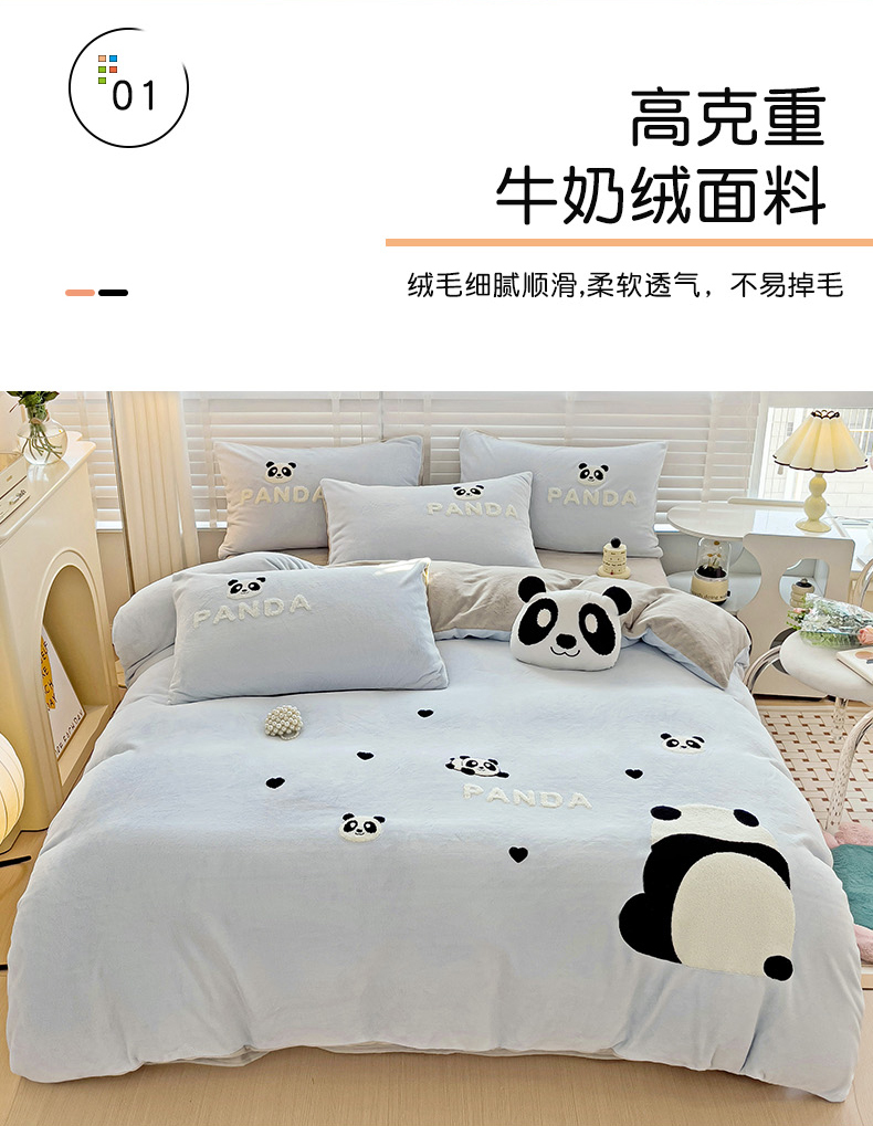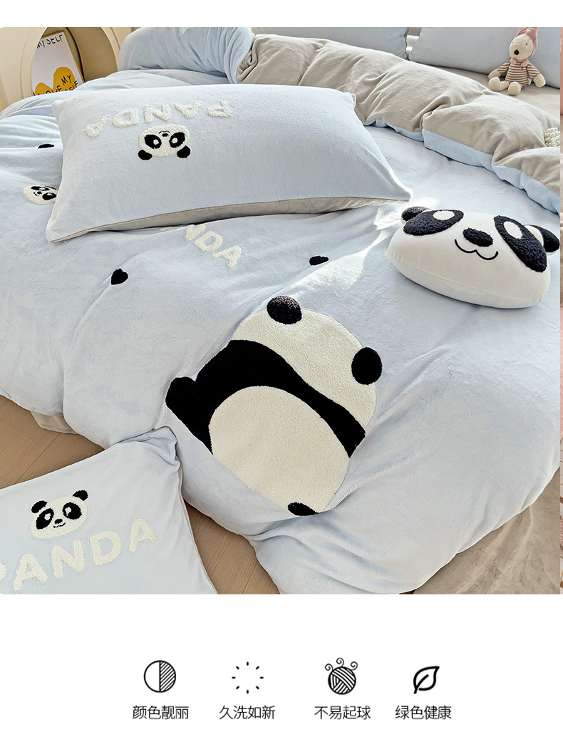 商品名称:娜娜 2023新款牛奶绒毛巾绣四件套 熊猫多多系列 熊猫多多-天空蓝