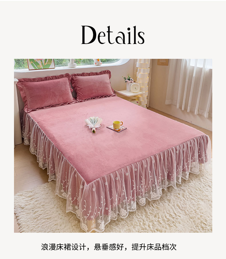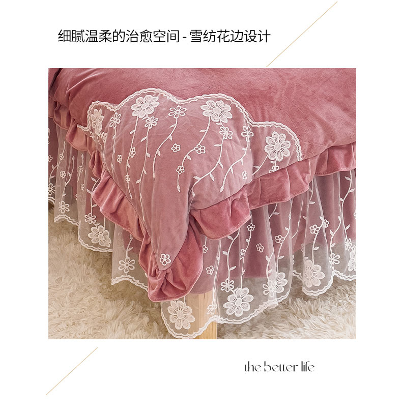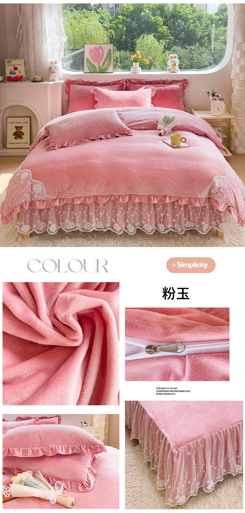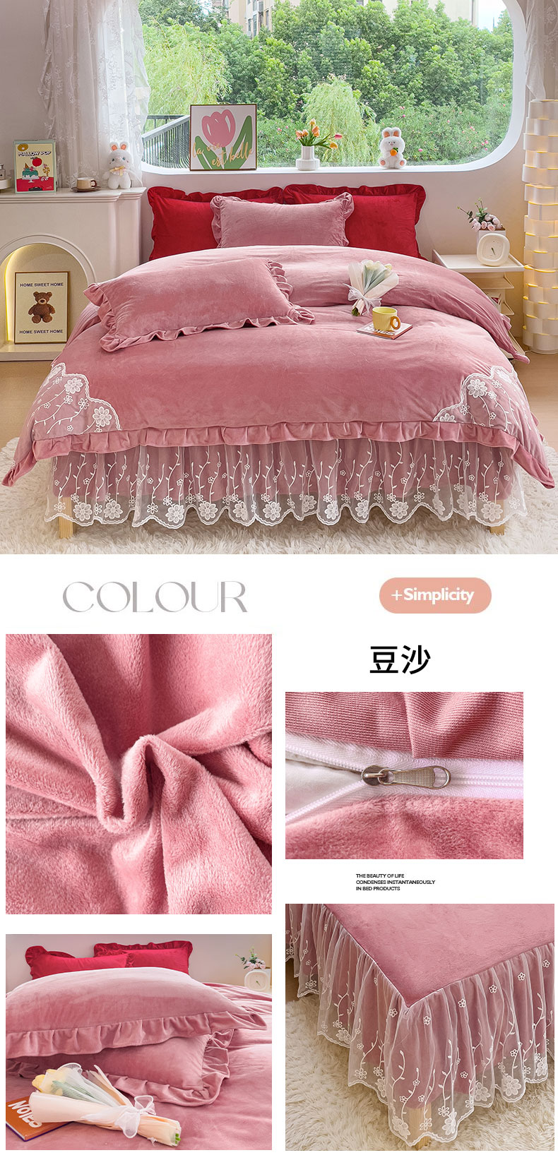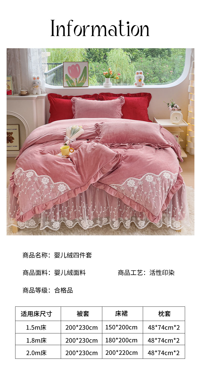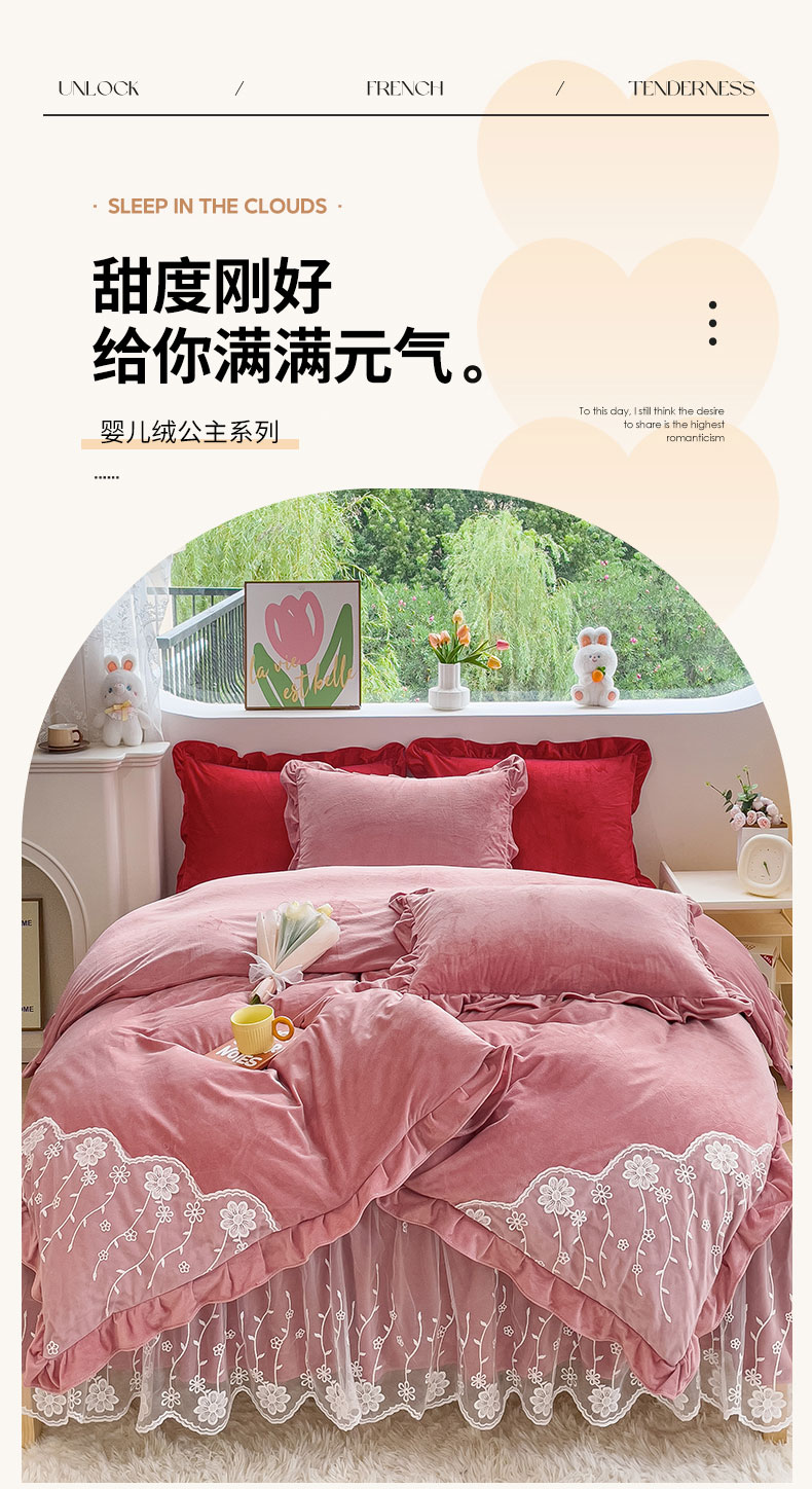 (总)2024直播爆款韩版纯色花边牛奶绒婴儿绒床裙四件套 花香