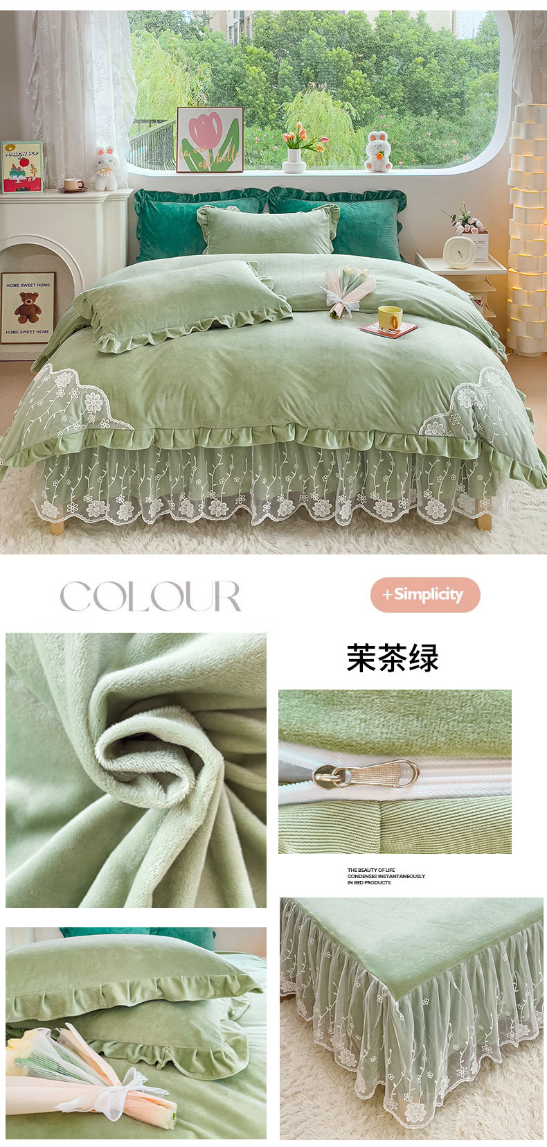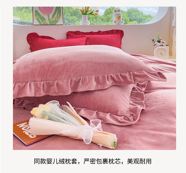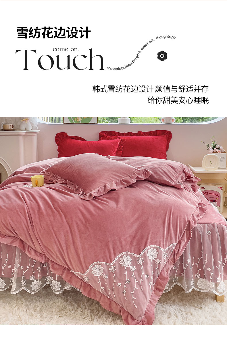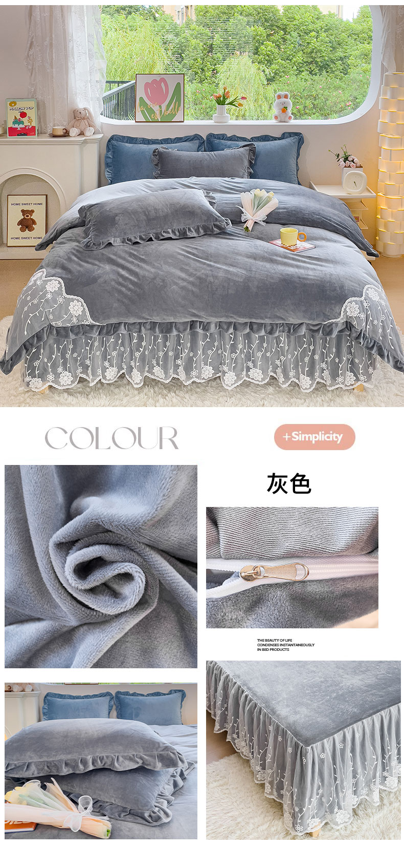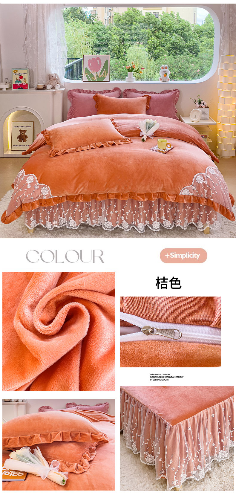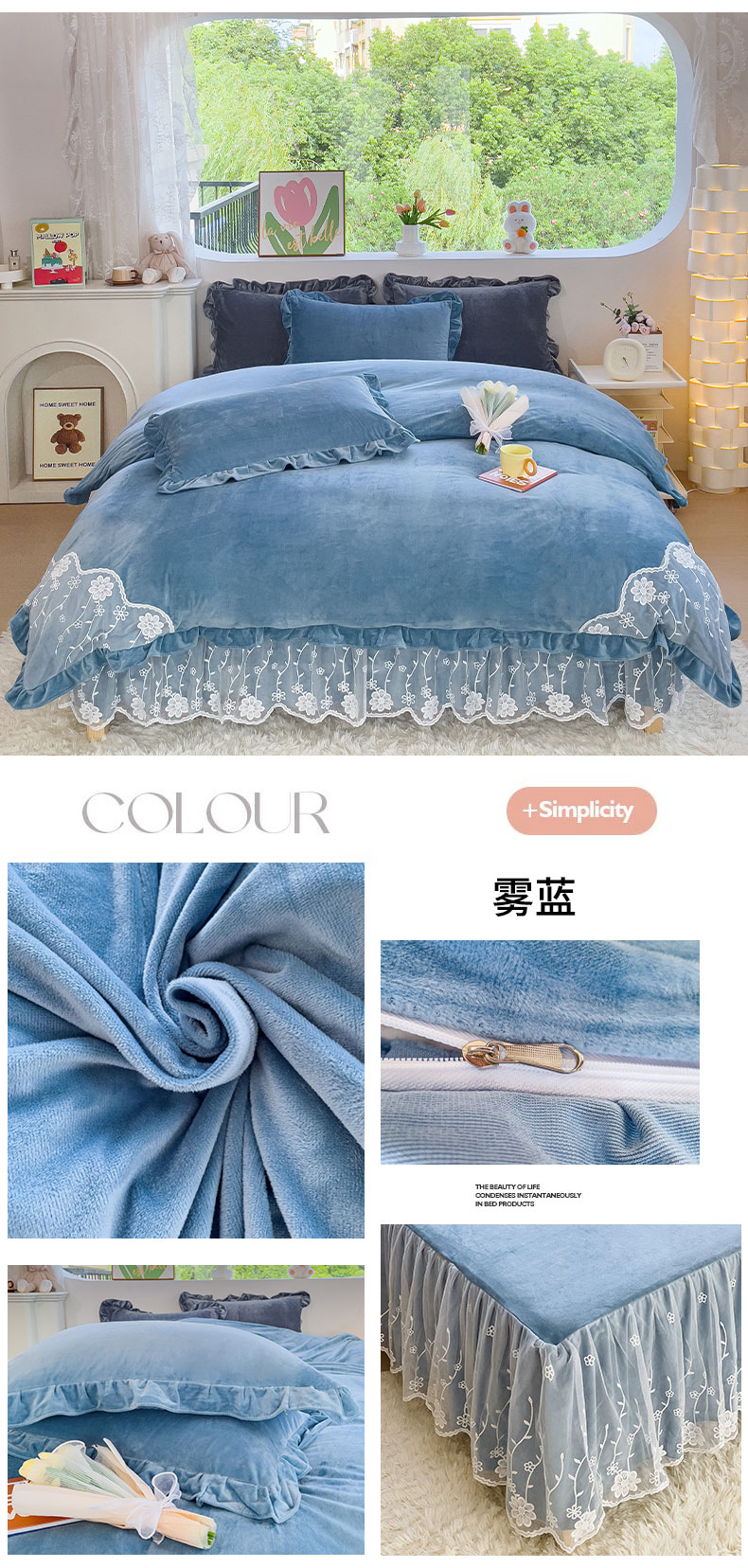 (总)2024直播爆款韩版纯色花边牛奶绒婴儿绒床裙四件套 花香