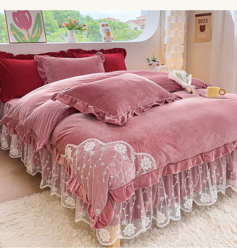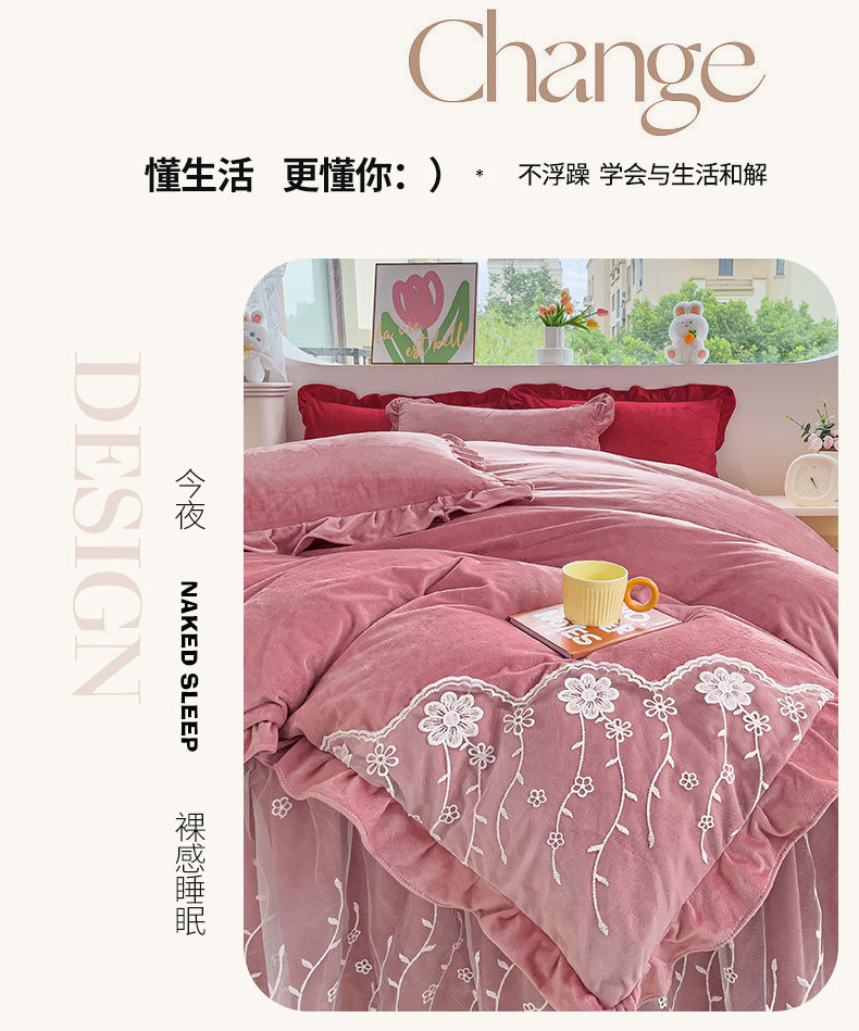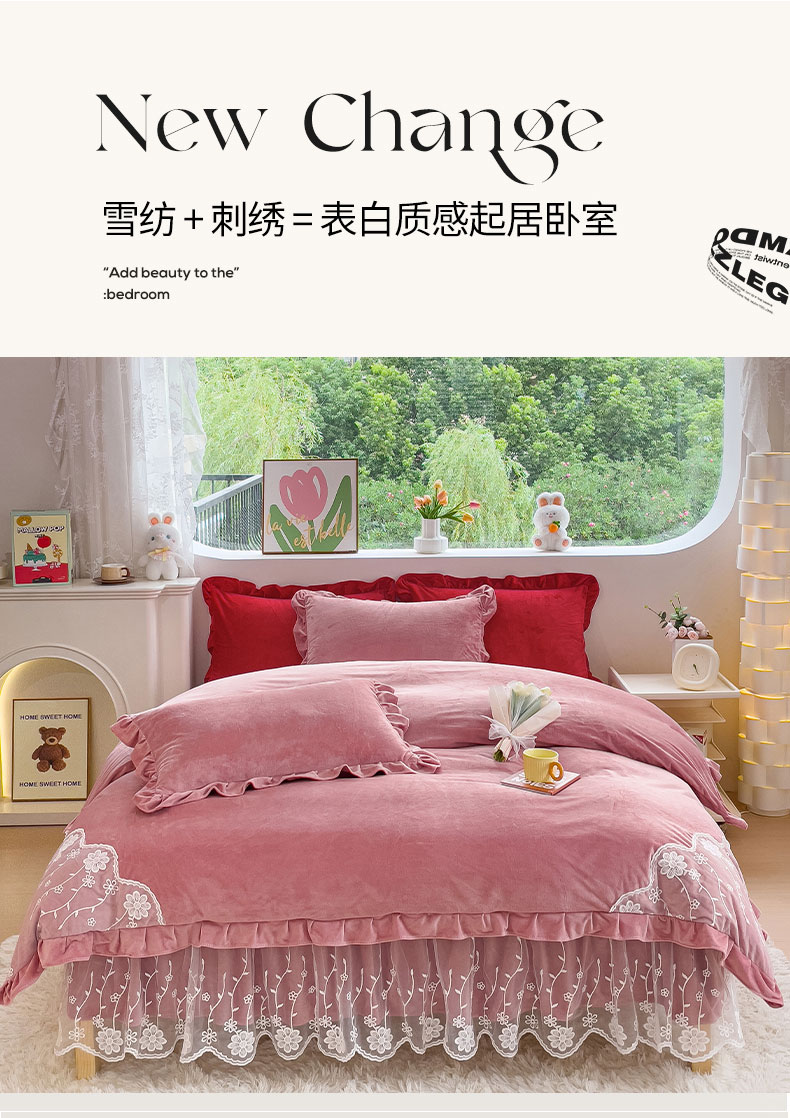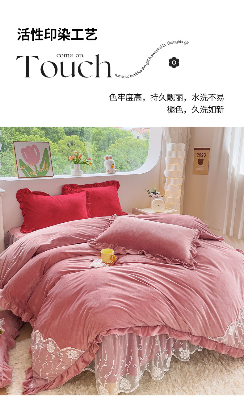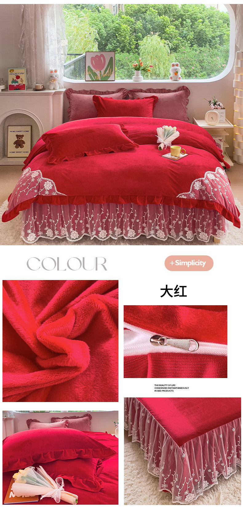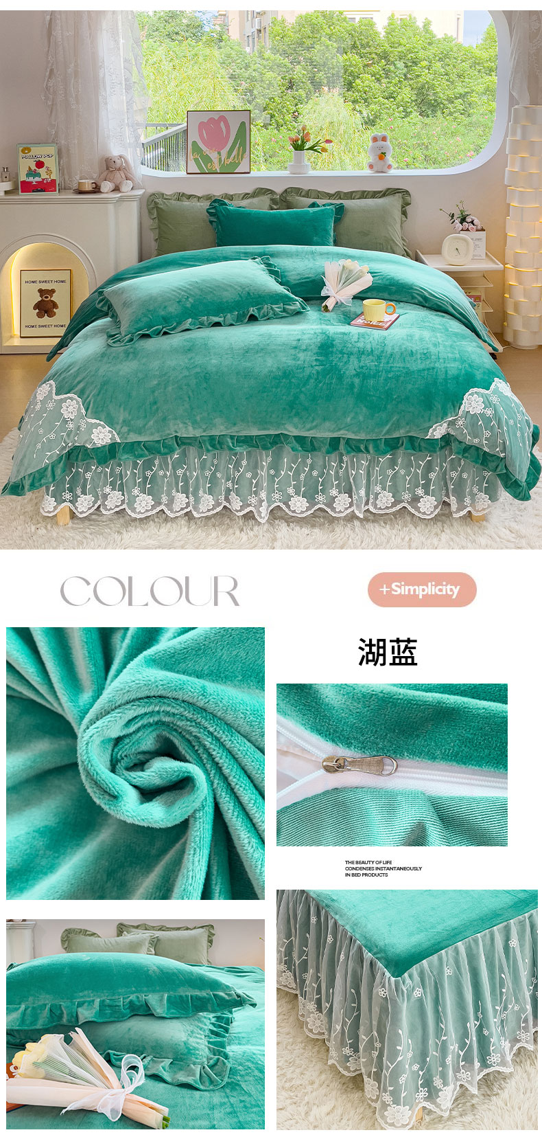 (总)2024直播爆款韩版纯色花边牛奶绒婴儿绒床裙四件套 花香