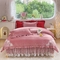 金米诺 新款韩版花边水洗棉泡泡纱四件套公主条四件套 褶皱-浅粉,褶皱-浅粉