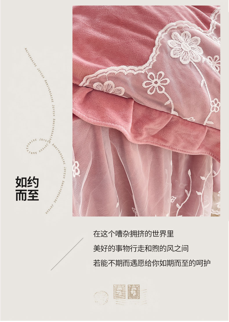 商品名称:(总)2024直播爆款韩版纯色花边牛奶绒婴儿绒床裙四件套 花香