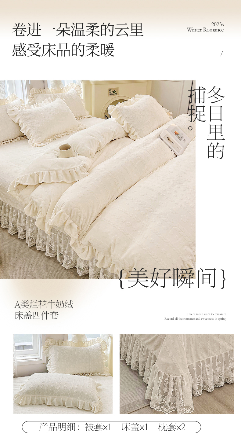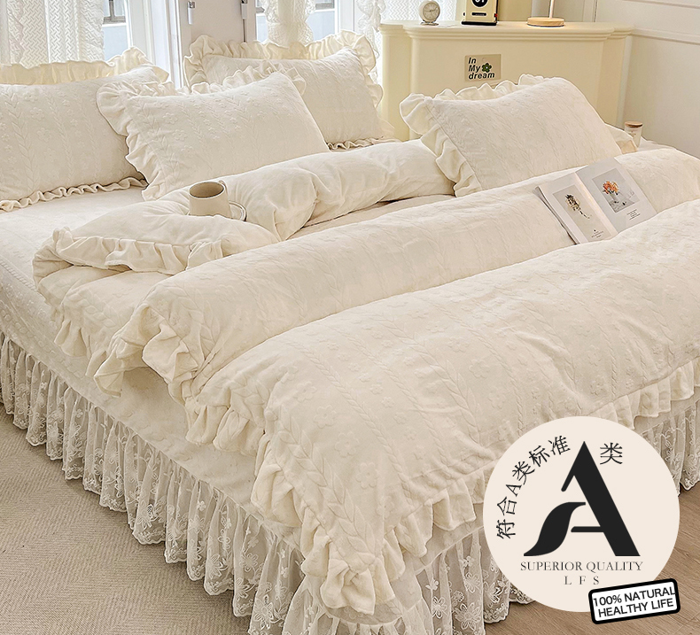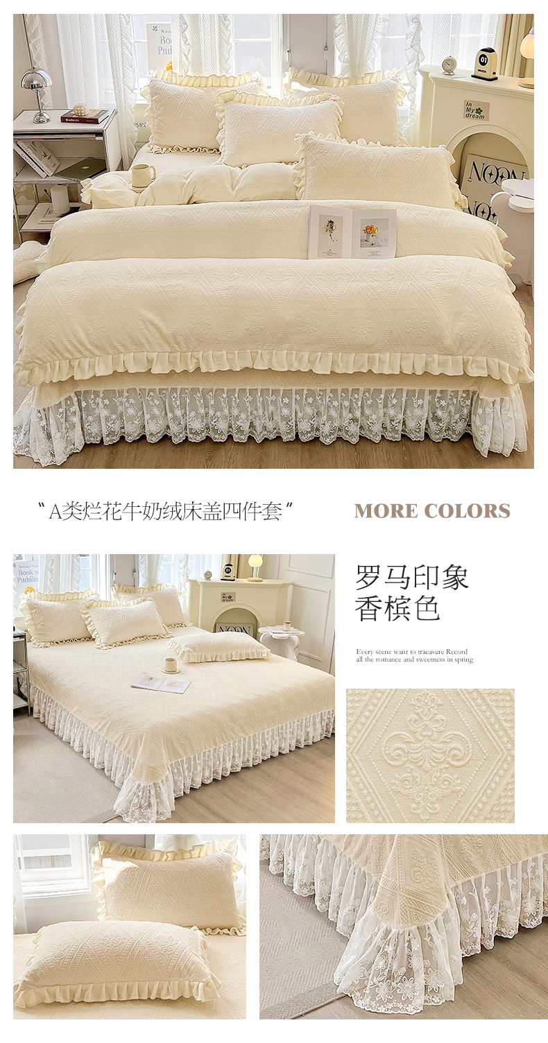 (总)宜凡家纺 2025新款兔绒提花牛奶绒夹棉床裙四件套,爱心 少女粉,爱心 粉紫,爱心 驼色,蝶舞 大红,蝶舞 米色,蝶舞 浅紫,蝶舞 玉色,简爱 苍青,简爱 豆沙紫,简爱 玉色,樱桃 苍青,樱桃 豆沙紫,樱桃 奶油白