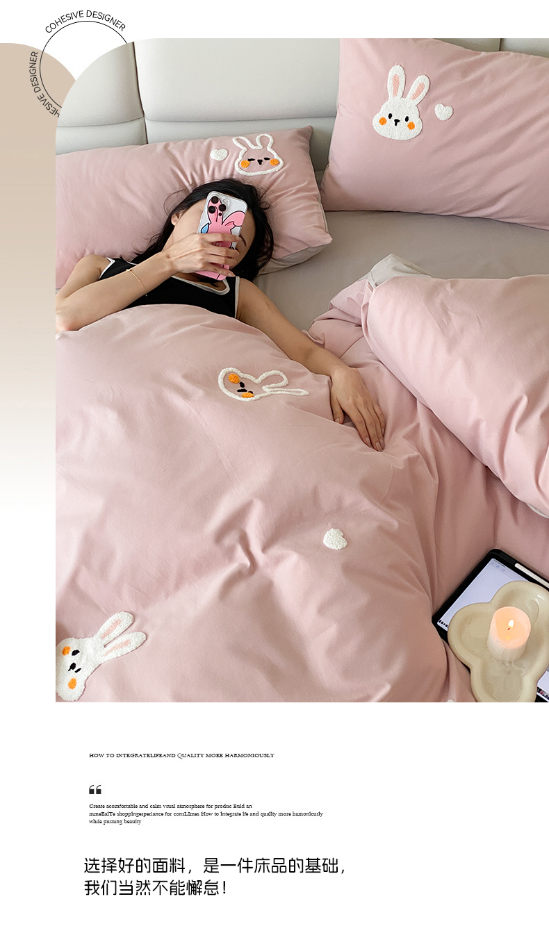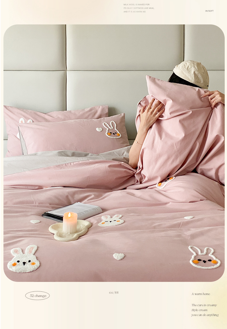 (总)时光里 2023INS风软萌可爱60s加厚磨毛刺绣款全棉四件套