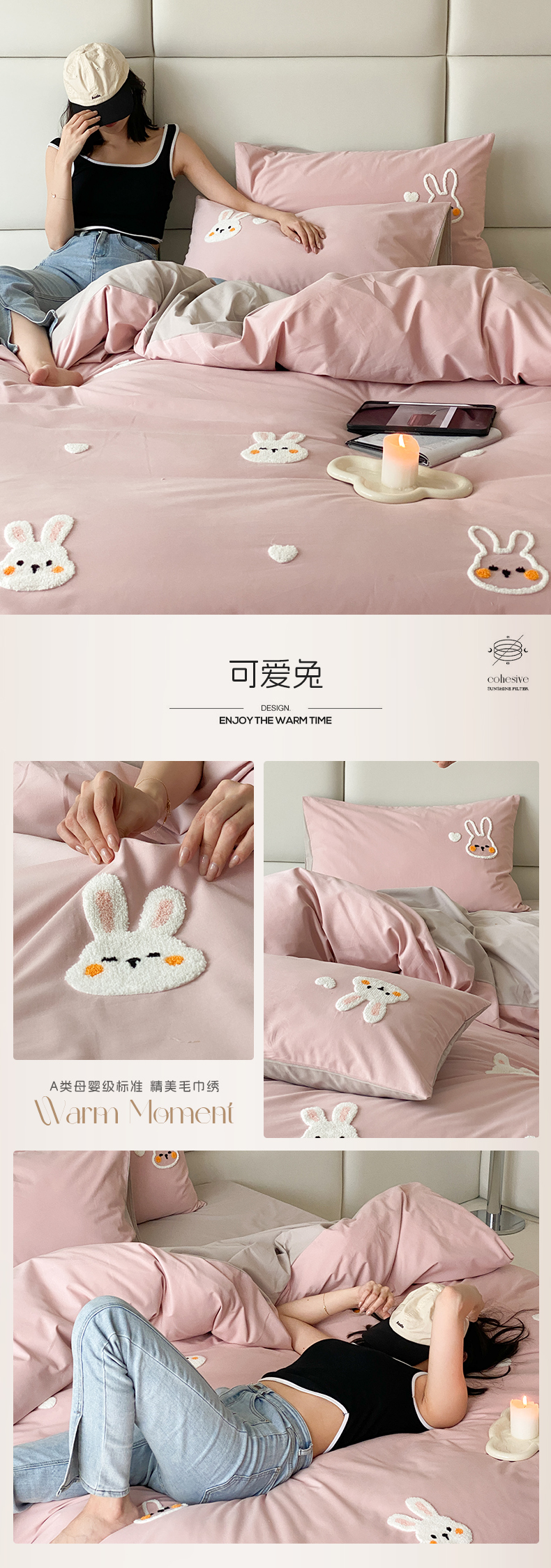 (总)时光里 2025新款100S卡通风贡缎毛巾绣四件套,捣莓熊,兔小懒,小猫耶,熊猫语,许愿树,伊维雅