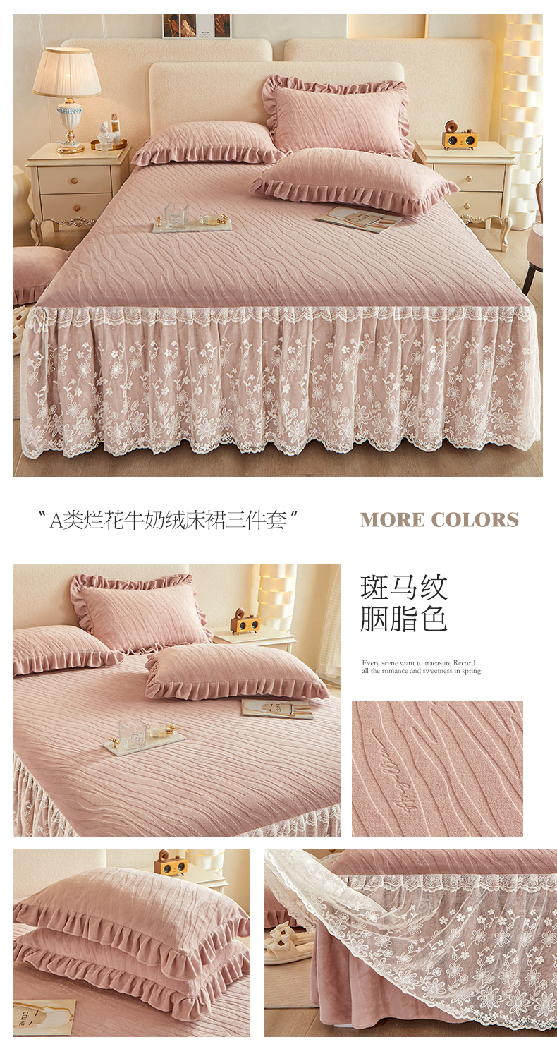 商品名称:宜凡 2023新款烂花牛奶绒床裙三件套 斑马纹-胭脂色