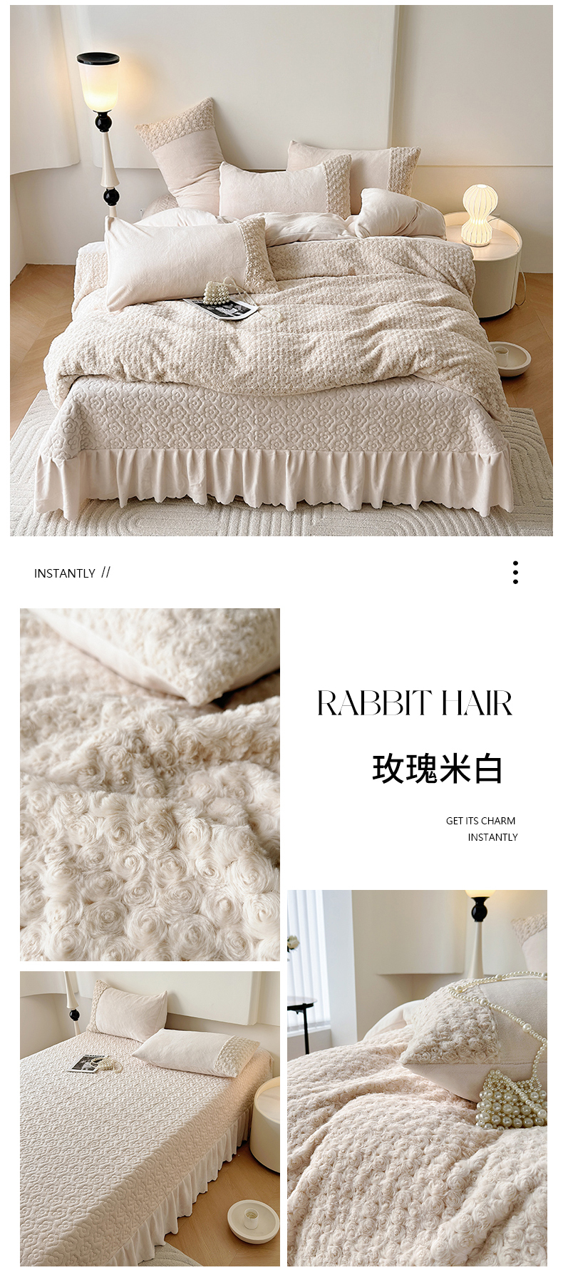 商品名称:舒梦琪 2023新款法式玫瑰兔绒提花四件套 玫瑰米白