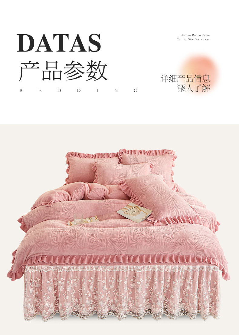当前位置: 91家纺网 > 商品网购 > 床品套件 > 四件套 > 牛奶绒四件套 > 宜凡 2023新款烂花牛奶绒床裙四件套 锦绣-柔粉