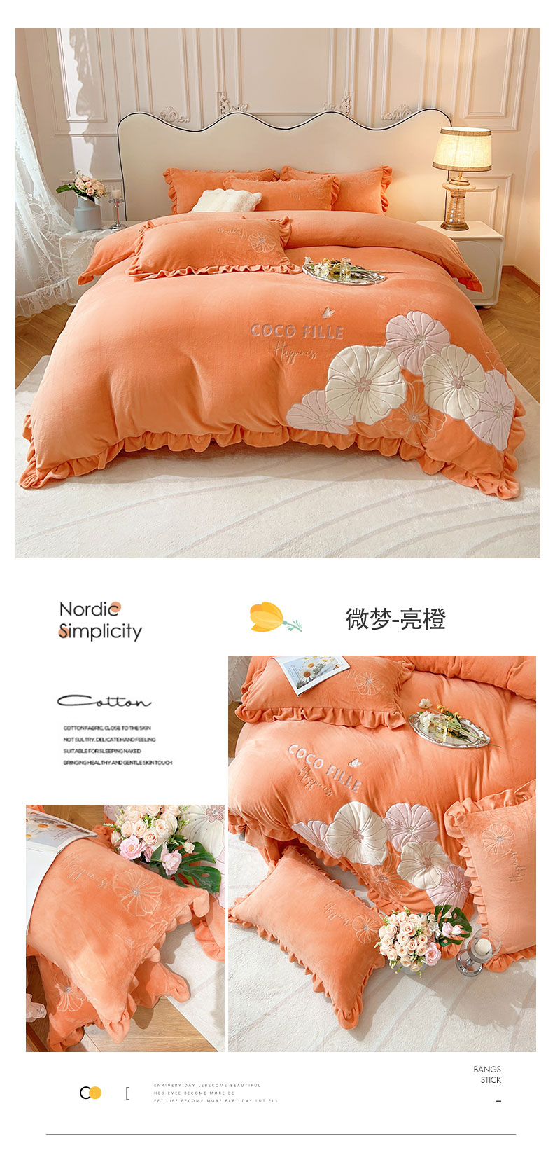 商品名称:卡初 2023新款高克重亲肤牛奶绒四件套 微梦-亮橙